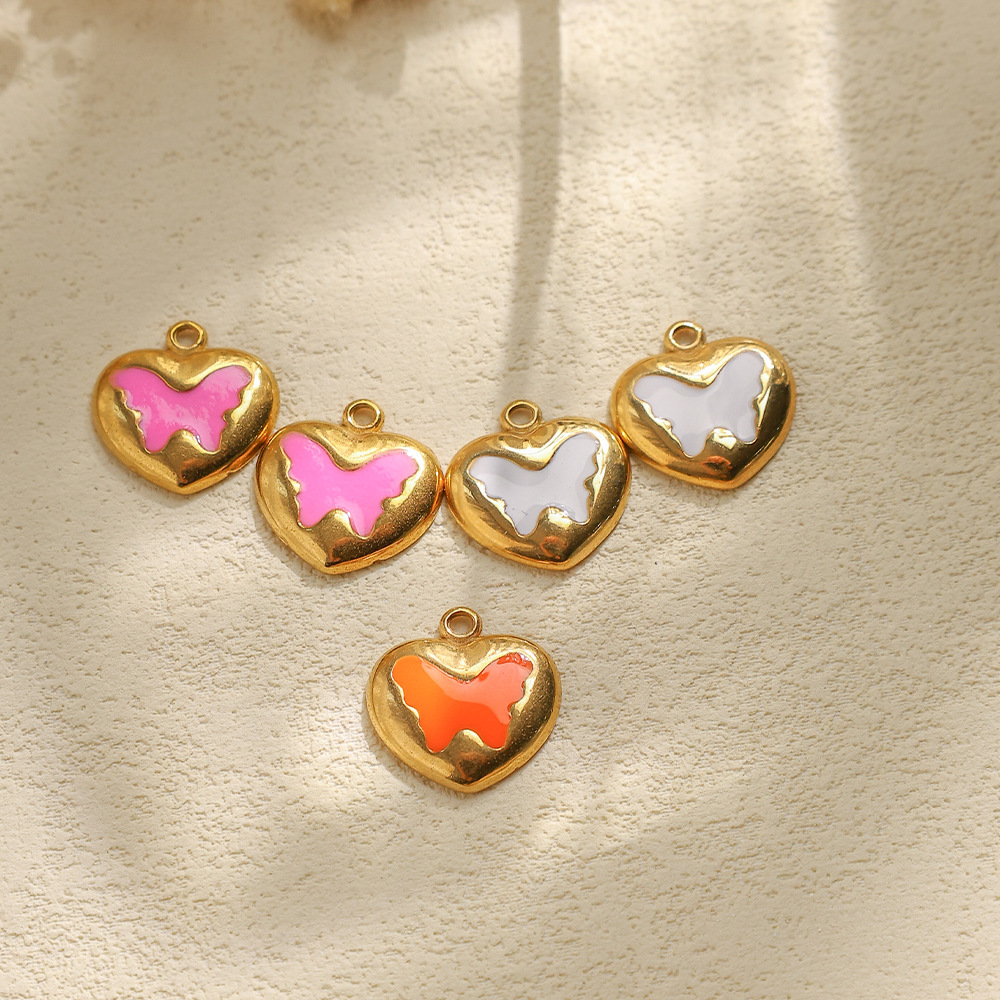 Nerūdijančio plieno Širdies Pakabukai, 304 Nerūdijantis plienas, Širdis, padengtą, Pasidaryk pats & emalė, daugiau spalvų pasirinkimas, 10kompiuteriai/Krepšys, Pardavė Krepšys