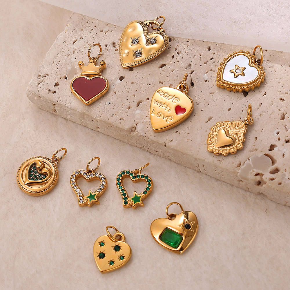 Nerūdijančio plieno Širdies Pakabukai, 304 Nerūdijantis plienas, padengtą, Bižuterijos & skirtingo dydžio pasirinkimo & emalė, aukso, Pardavė PC