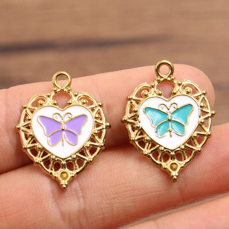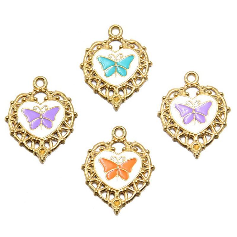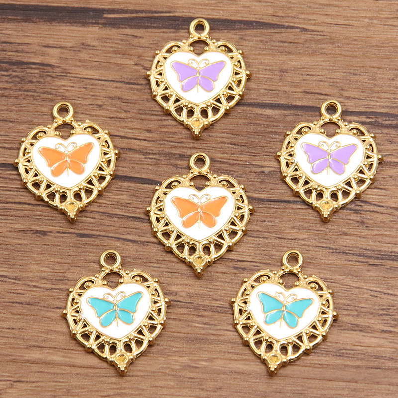 Nerūdijančio plieno Širdies Pakabukai, 304 Nerūdijantis plienas, aukso spalva padengtas, Pasidaryk pats & emalė, daugiau spalvų pasirinkimas, 10kompiuteriai/Krepšys, Pardavė Krepšys