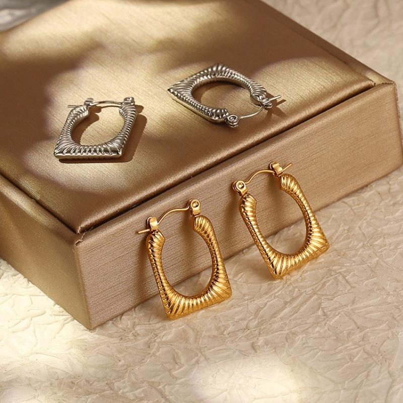 1:Hydraulic square earrings gold2:Hydraulic square earrings steel color