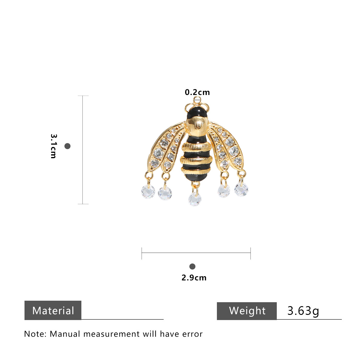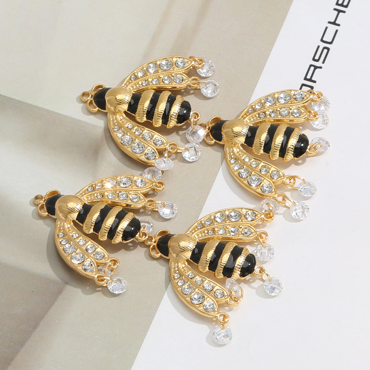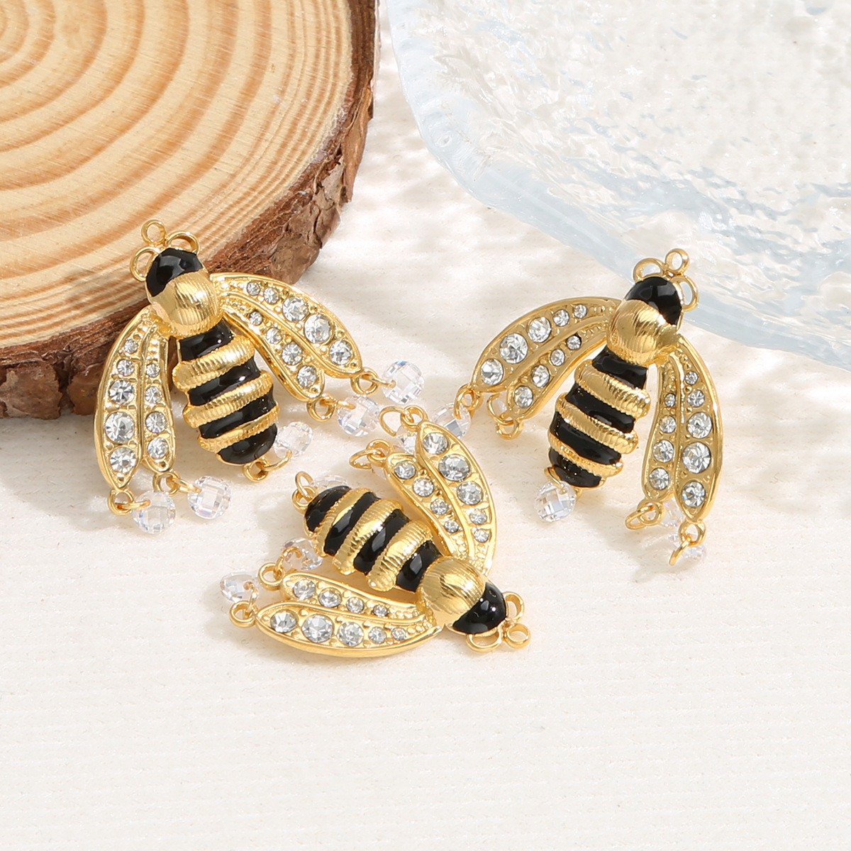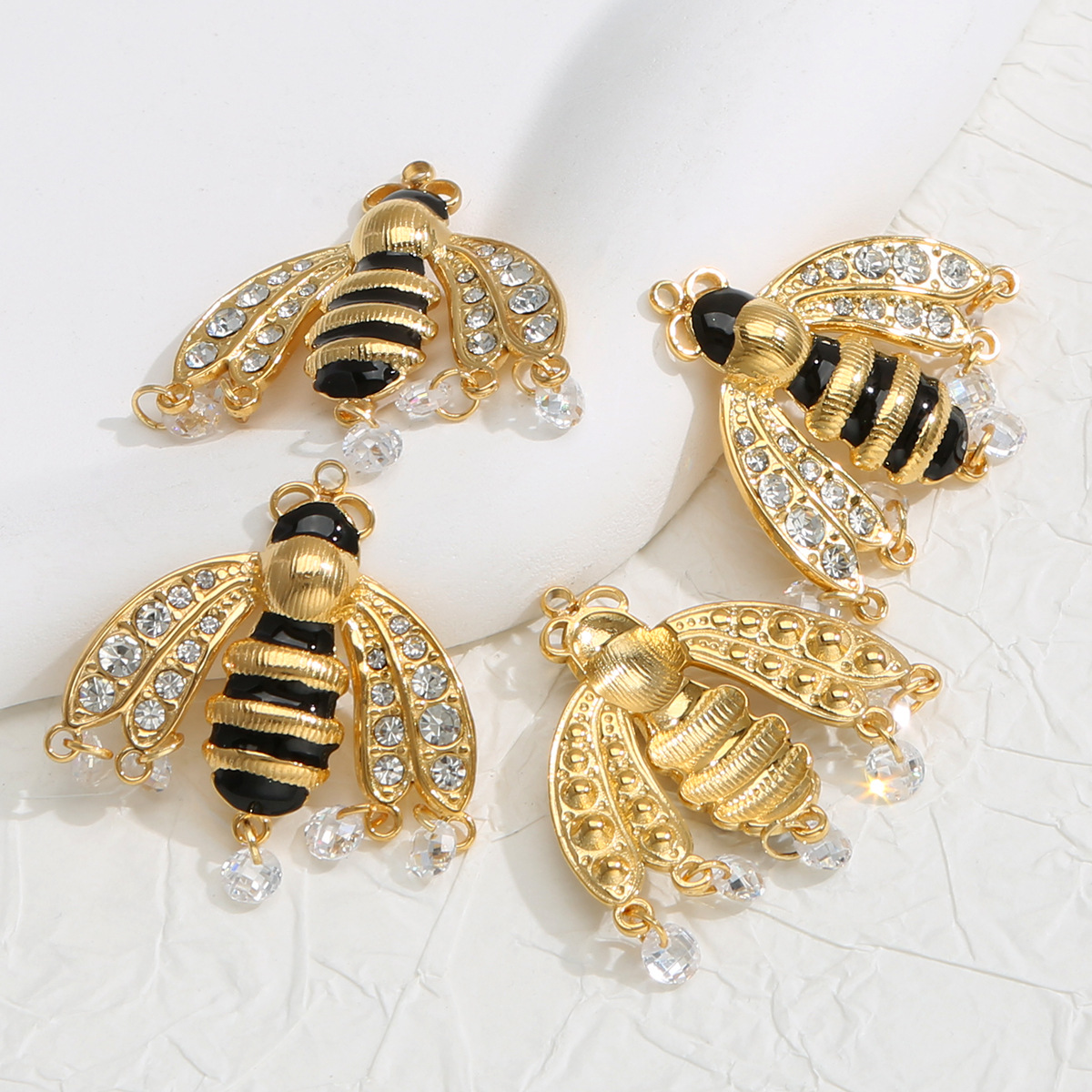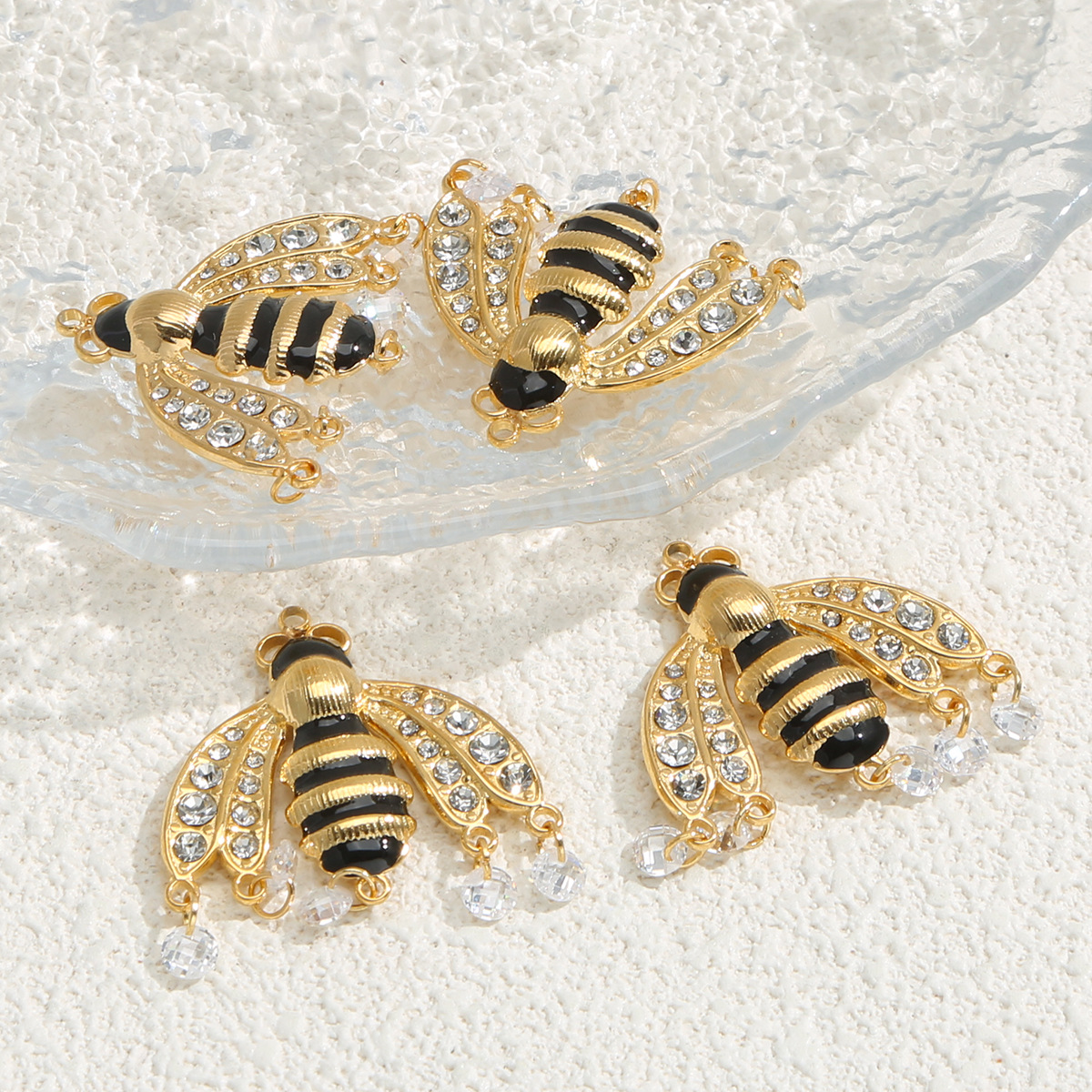 Nerūdijančio plieno Gyvūnų Pakabukai, 304 Nerūdijantis plienas, Bitė, aukso spalva padengtas, Pasidaryk pats & emalė & su Kalnų krištolas, aukso, 10kompiuteriai/Krepšys, Pardavė Krepšys