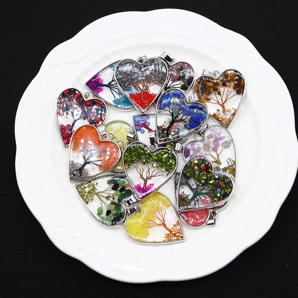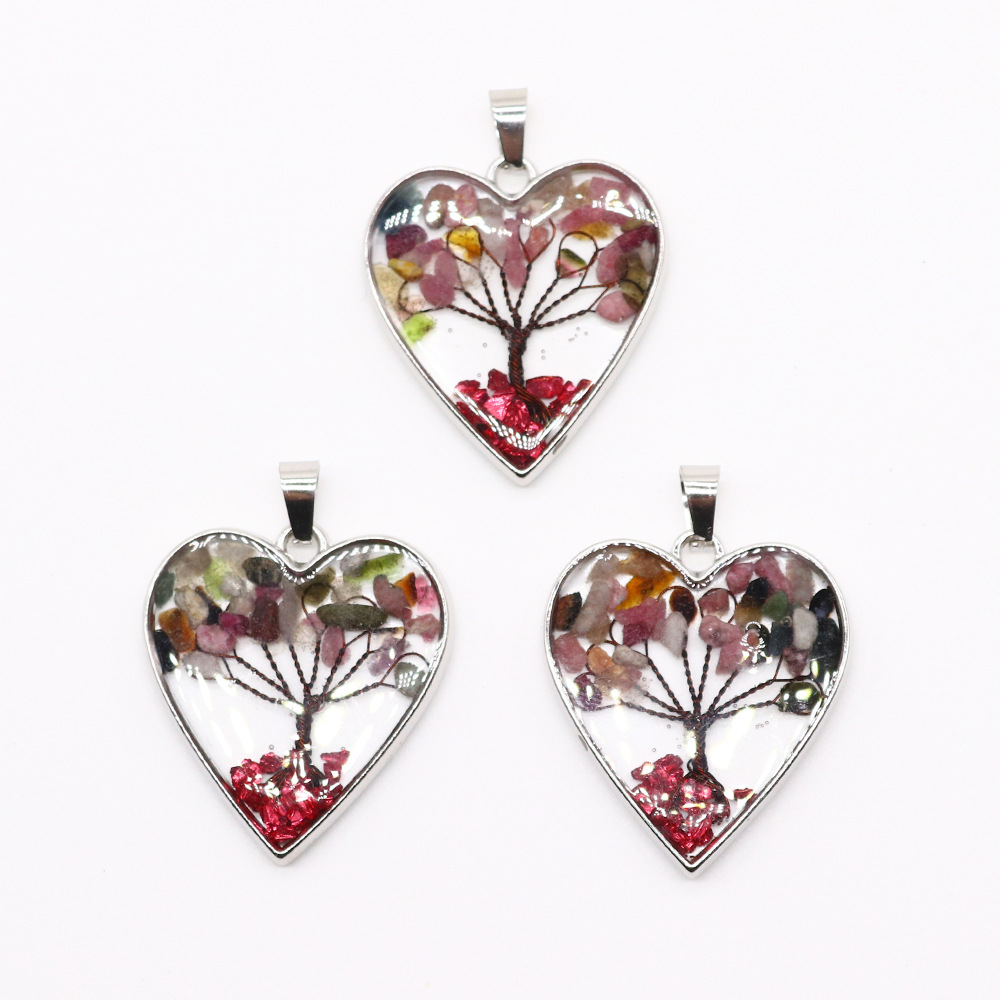 Akmuo Pakabukai Juvelyrika, Cinko lydinys, su Natūralus akmuo, Širdis, padengtą, Pasidaryk pats & įvairios medžiagos pasirinkimas, daugiau spalvų pasirinkimas, nikelio, švino ir kadmio nemokamai, 30x35mm, Pardavė PC
