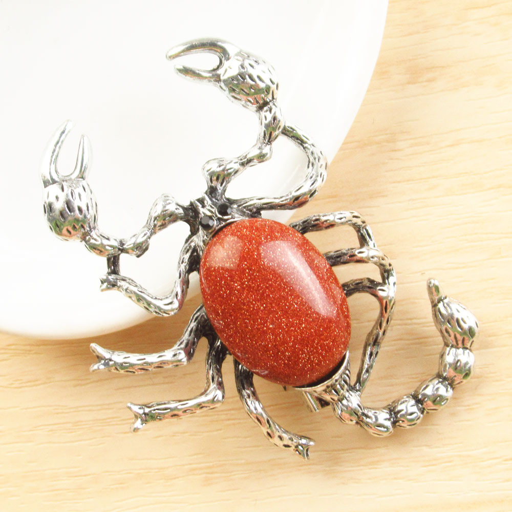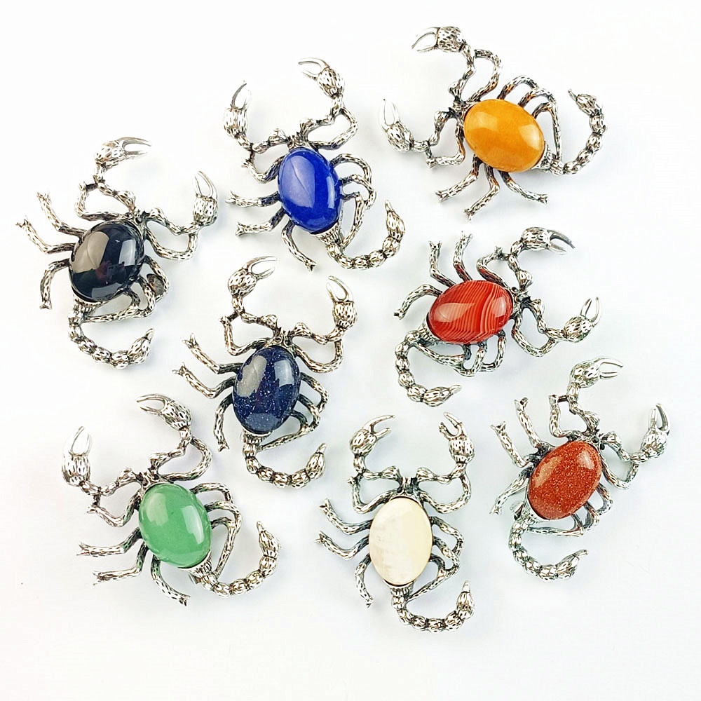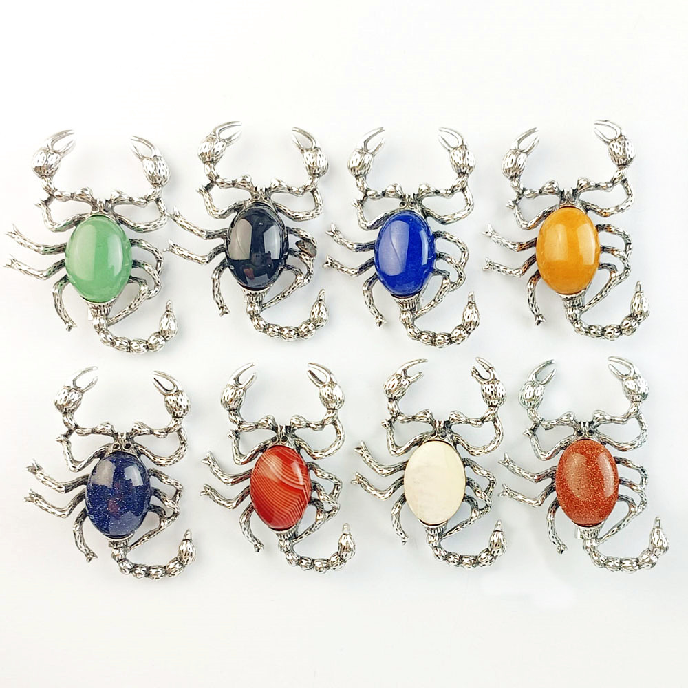Akmuo Pakabukai Juvelyrika, Cinko lydinys, su Natūralus akmuo, Skorpionas, sidabro spalva padengtas, Pasidaryk pats & įvairios medžiagos pasirinkimas, daugiau spalvų pasirinkimas, nikelio, švino ir kadmio nemokamai, 38x52mm, Pardavė PC