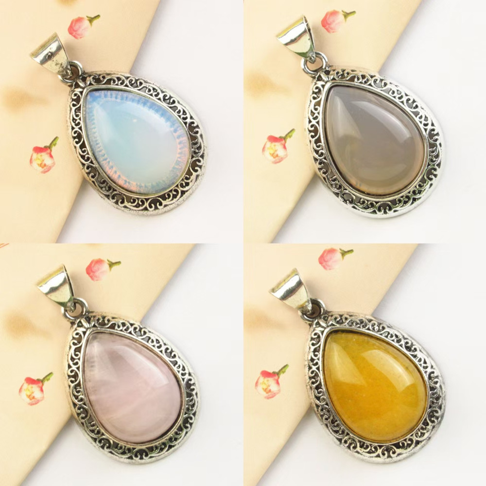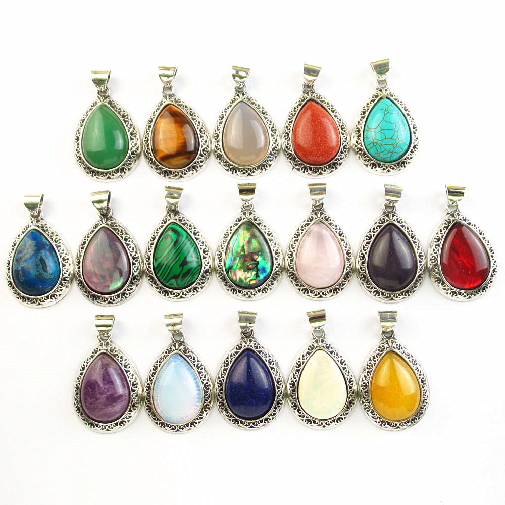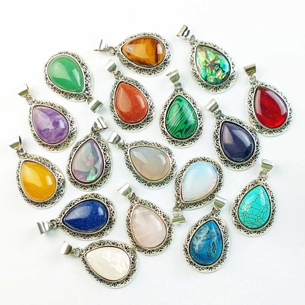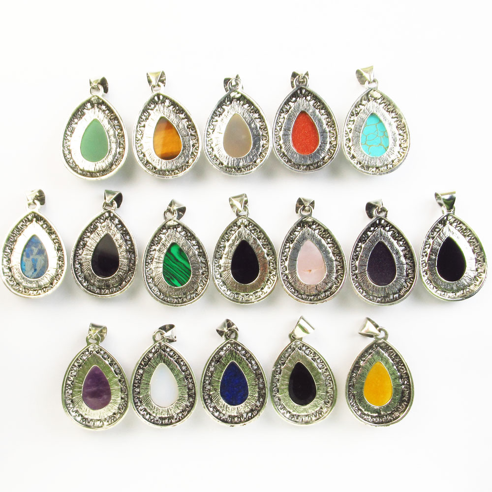 Akmuo Pakabukai Juvelyrika, Cinko lydinys, su Natūralus akmuo, Ašara, sidabro spalva padengtas, Pasidaryk pats & įvairios medžiagos pasirinkimas, daugiau spalvų pasirinkimas, nikelio, švino ir kadmio nemokamai, 28x38mm, Pardavė PC
