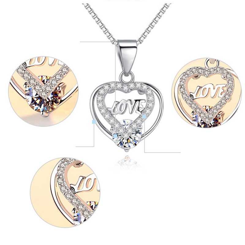 925 sidabro Karoliai, Širdis, paplatinuota, įvairių stilių pasirinkimas & mikro nutiesti kubinių Zirconia & moters, Ilgis Apytiksliai 16-20 Inch, Pardavė PC
