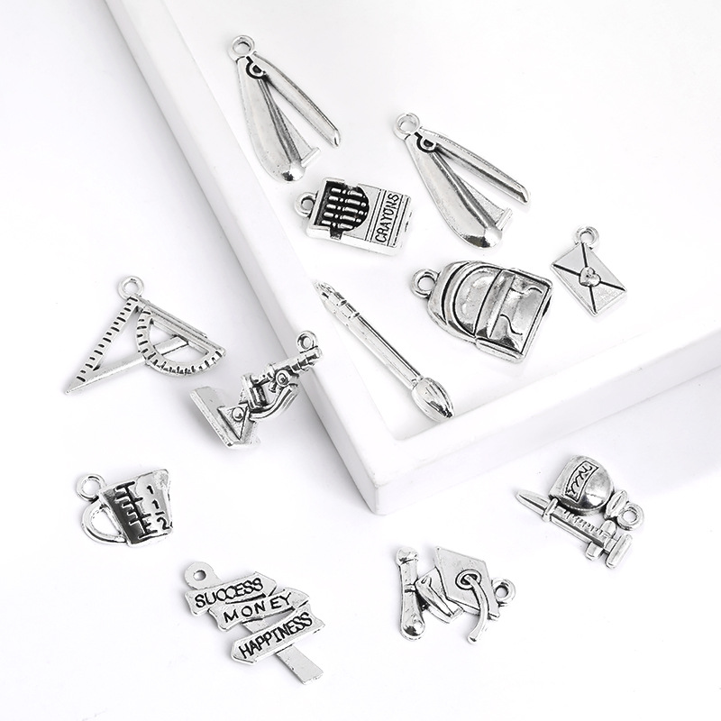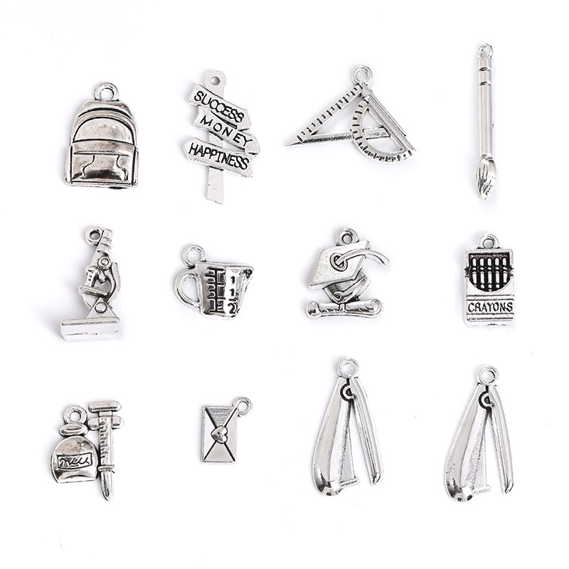 1:Crayon 17x9x 3mm 2g2:Sampling pen 18x13x 4mm 1.3g3:Road sign 25x13.5x 2mm 1.3g4:Schoolbag 20x 14x 3mm 1.3g5:Microscope 20x 12x 8mm 2.4g6:Graduation cap 17x 16x 3mm 1.3g7:Envelope 12x9x 1mm 0.4g8:Measuring cup 13x 14x 4mm 0.8g9:Brush 29.5 x4x 4mm 1.3g10:stapler 25x 12.5x 1.5mm 1.7gg11:Ruler 21x 20x 2mm 1.3g