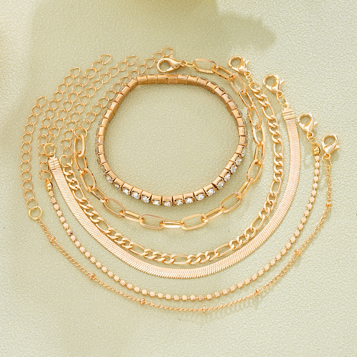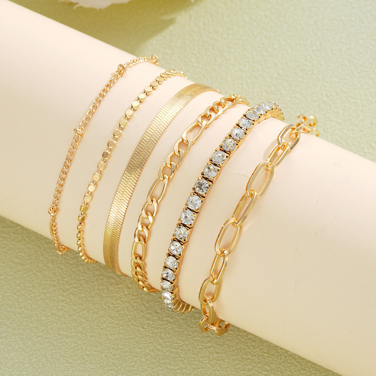 Cinko lydinys Apyrankė, Abėcėlės raidė, aukso spalva padengtas, įvairių stilių pasirinkimas & moters & su Kalnų krištolas, Ilgis Apytiksliai 6-8 Inch, Pardavė PC