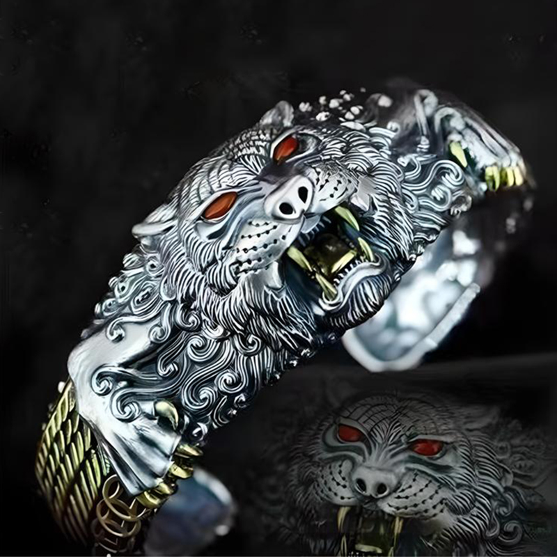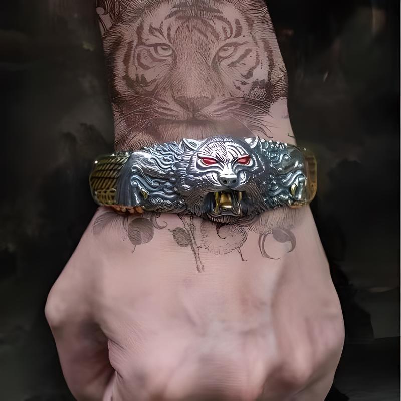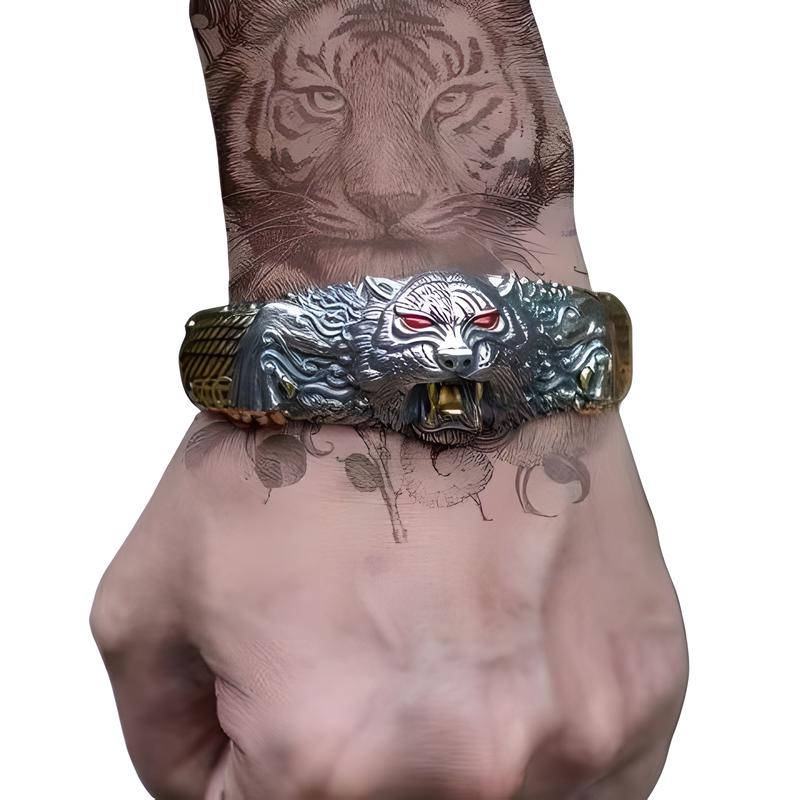 Cinko lydinys Cuff Apyrankės, Tigras, Raižyti, Vintage & žmogui, Vidinis skersmuo:Apytiksliai 60mm, Pardavė PC