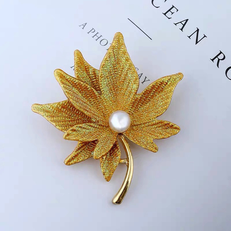 Cinko lydinys Sagė, su Plastikiniai Perlas, Klevo lapas, unisex & emalė, daugiau spalvų pasirinkimas, 50mm, Pardavė PC