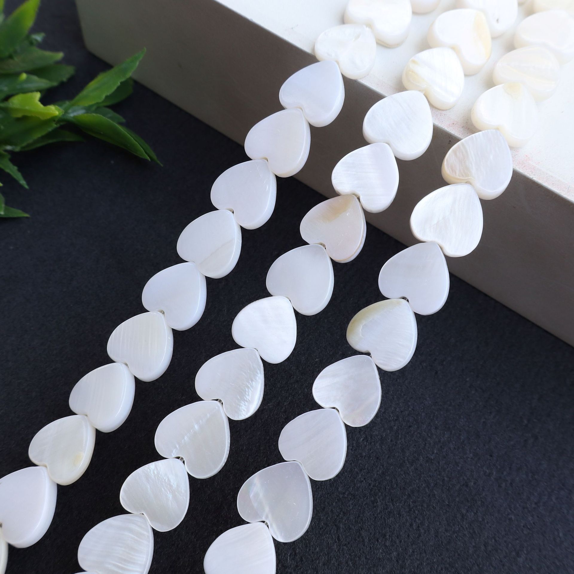 Gamtos Gėlavandeniai Shell karoliukai, Apvalkalas, Širdis, Pasidaryk pats, baltas, Parduota už 38 cm Strand