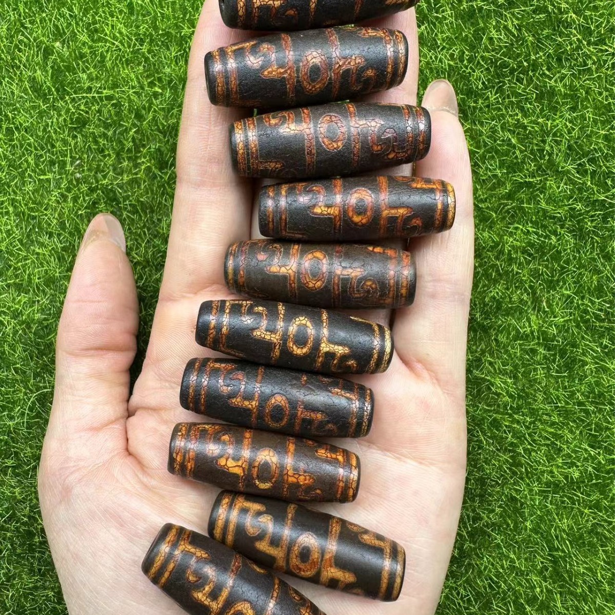Gamtos Tibeto Agatas dzi karoliukai, Pasidaryk pats, raudonas, 14x40mm, Pardavė PC
