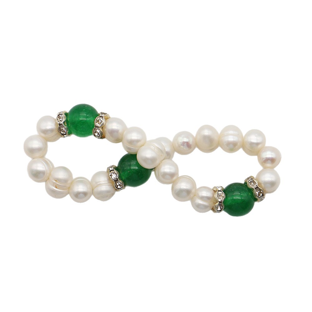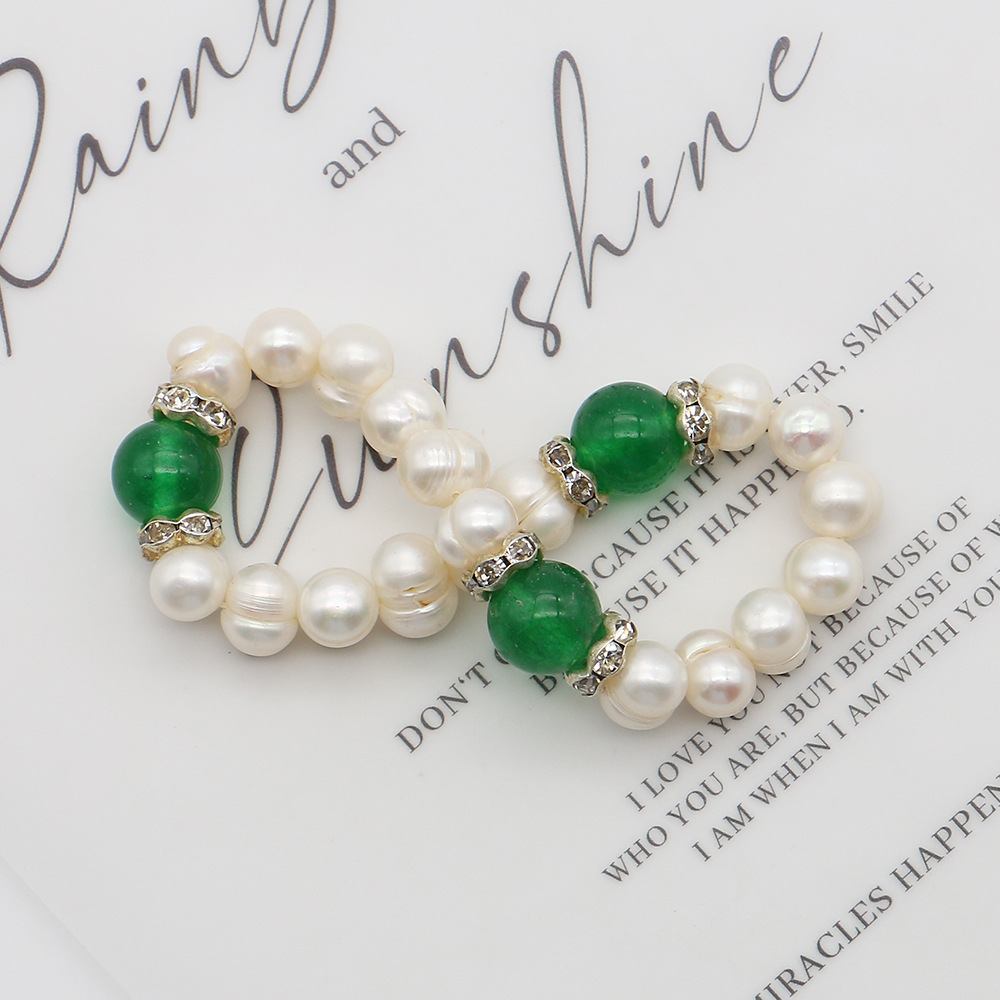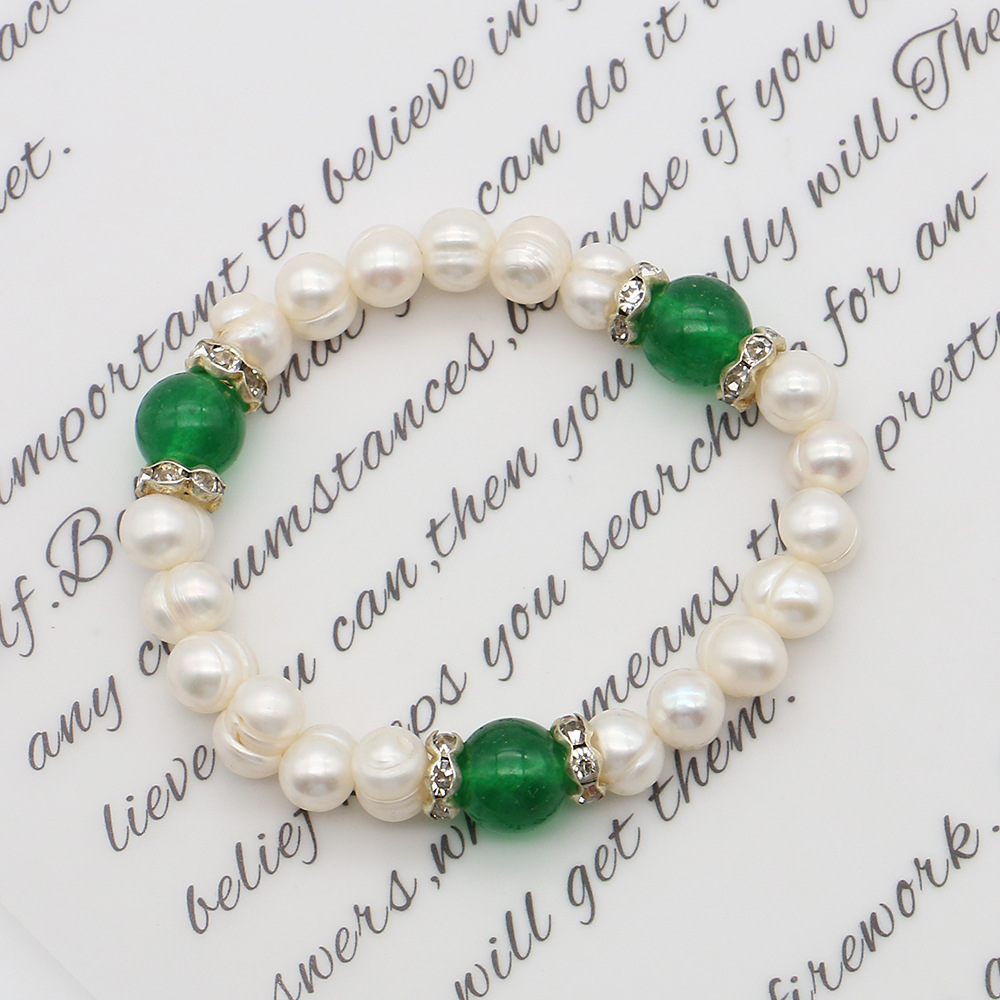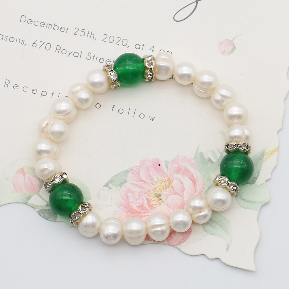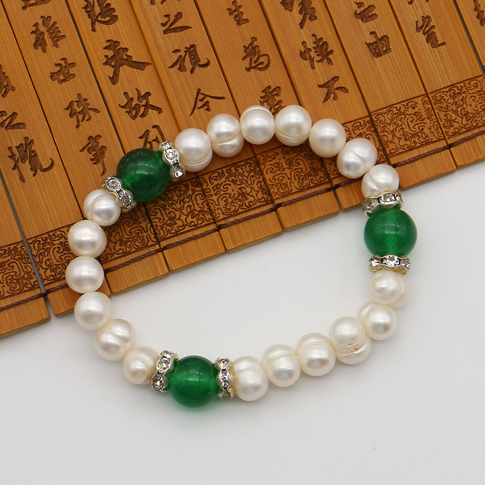 Gėlo vandens Kultūringas Perlai Apyrankė, Gėlo vandens perlų, su Jade Malaizija & 304 Nerūdijantis plienas, Nereguliarus, Bižuterijos & su Kalnų krištolas, mišrios spalvos, 8-9mm, Ilgis 16 cm, Pardavė PC