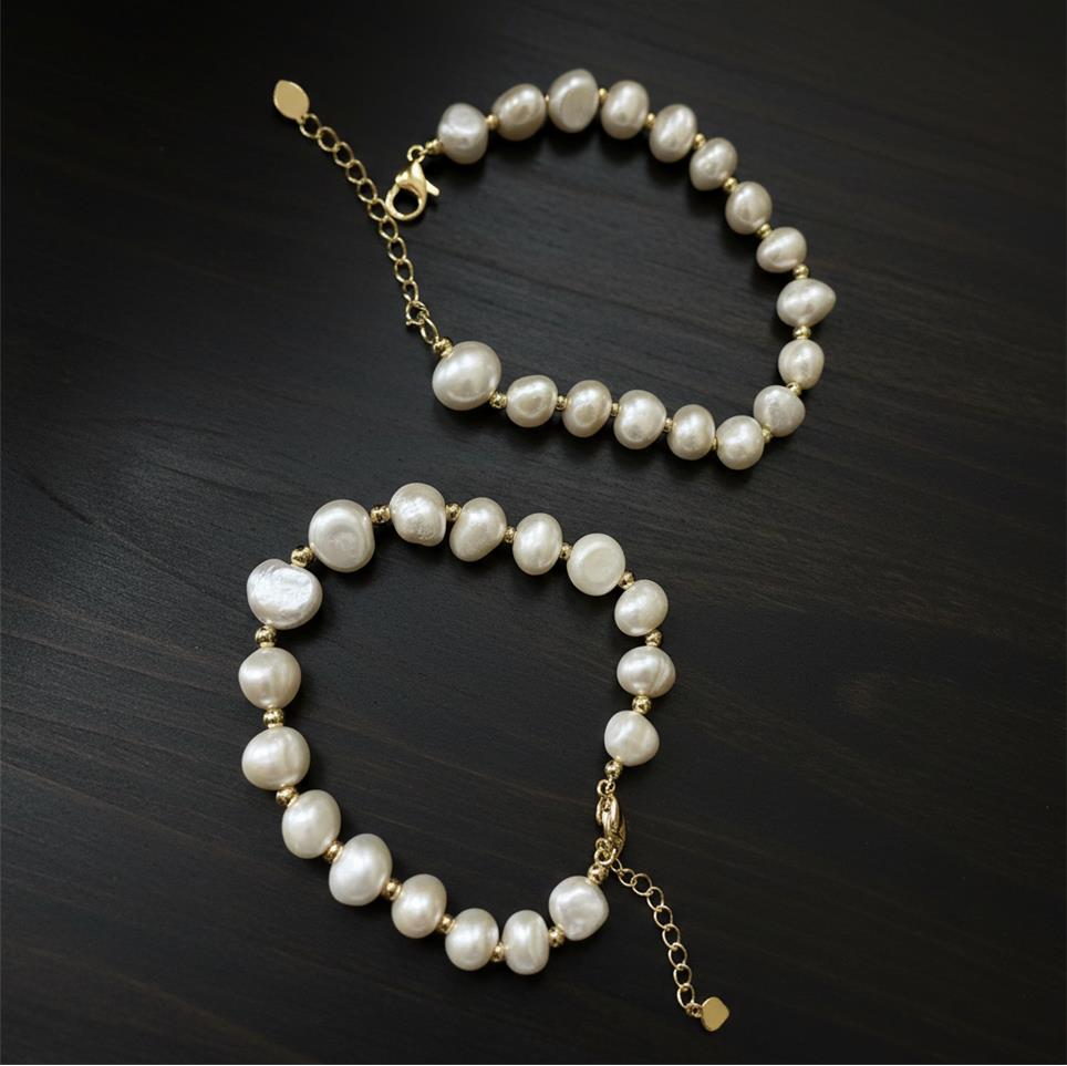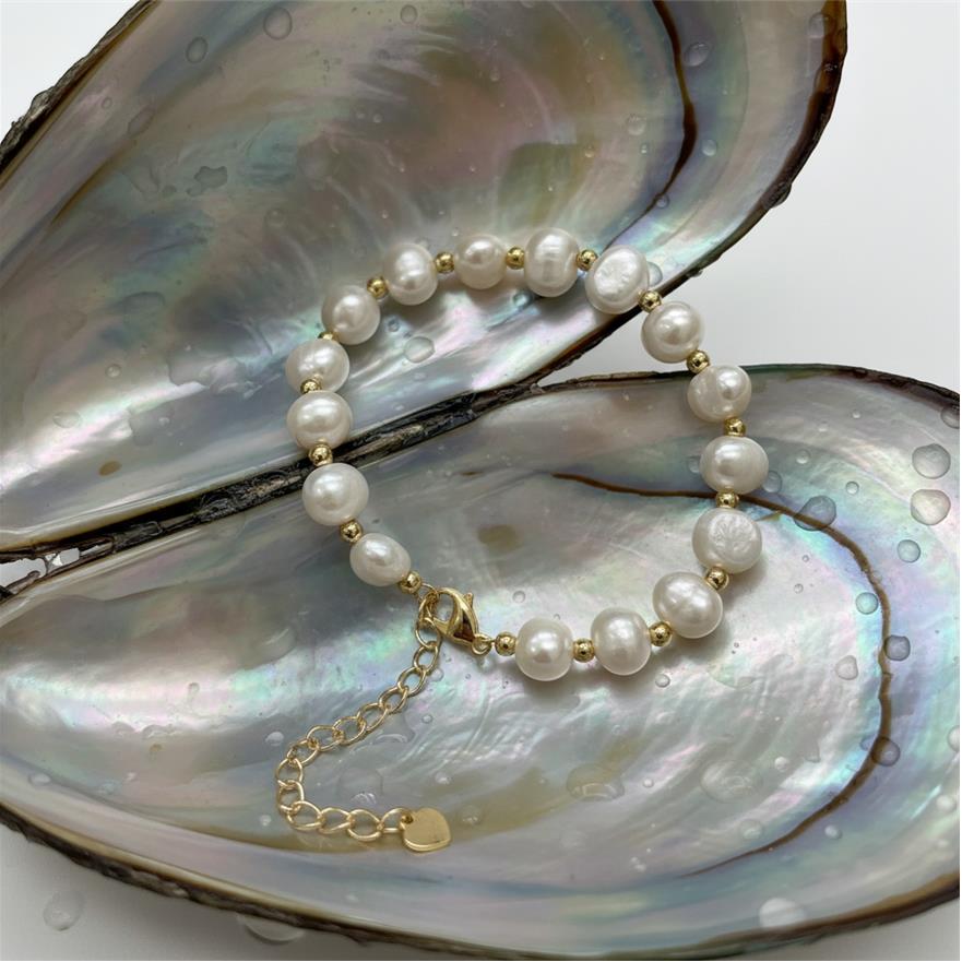 Gėlo vandens Kultūringas Perlai Apyrankė, Gėlo vandens perlų, su Cinko lydinys, BeCharmed Pearl, 14K paauksuoti, Reguliuojamas & moters, mišrios spalvos, Ilgis 17 cm, Pardavė PC