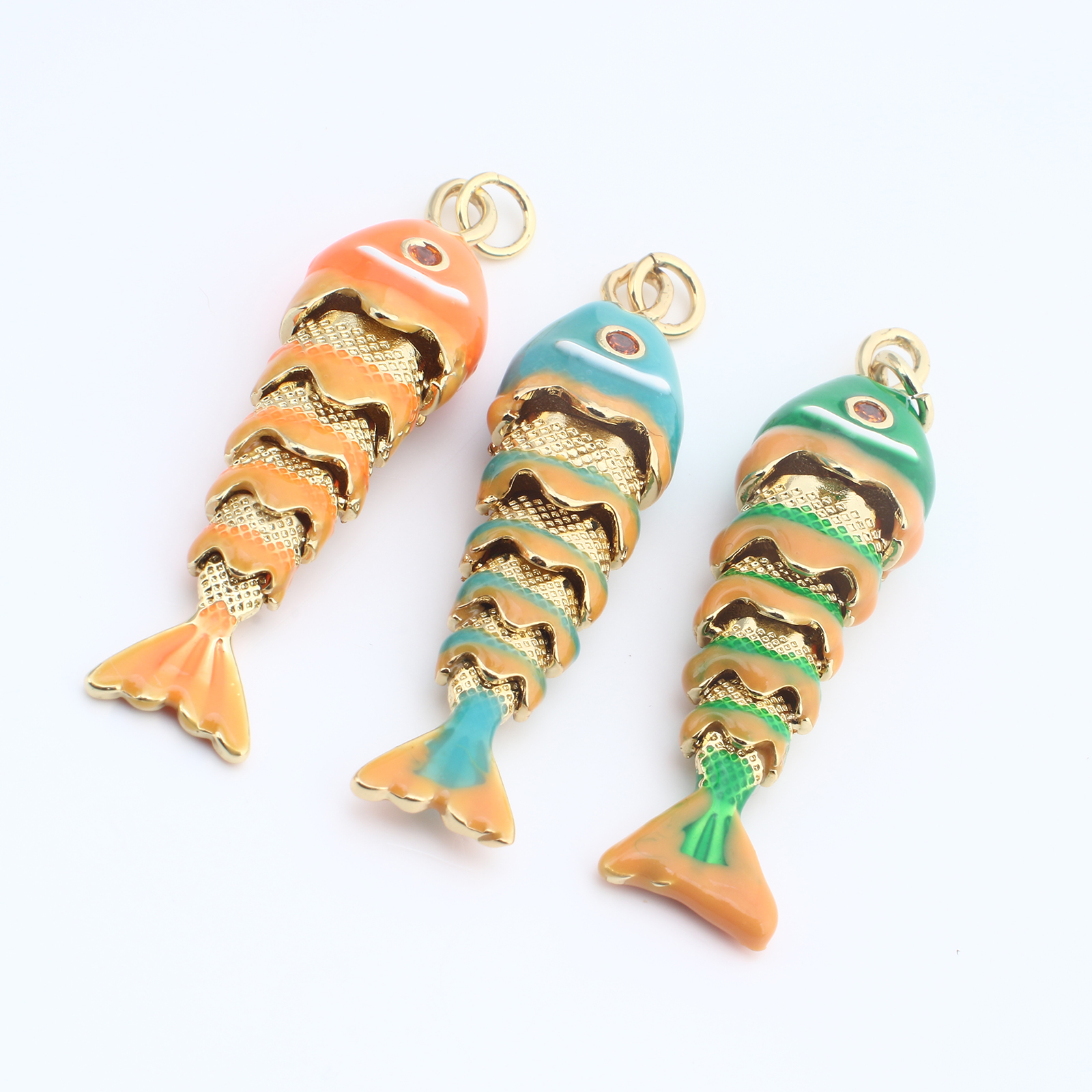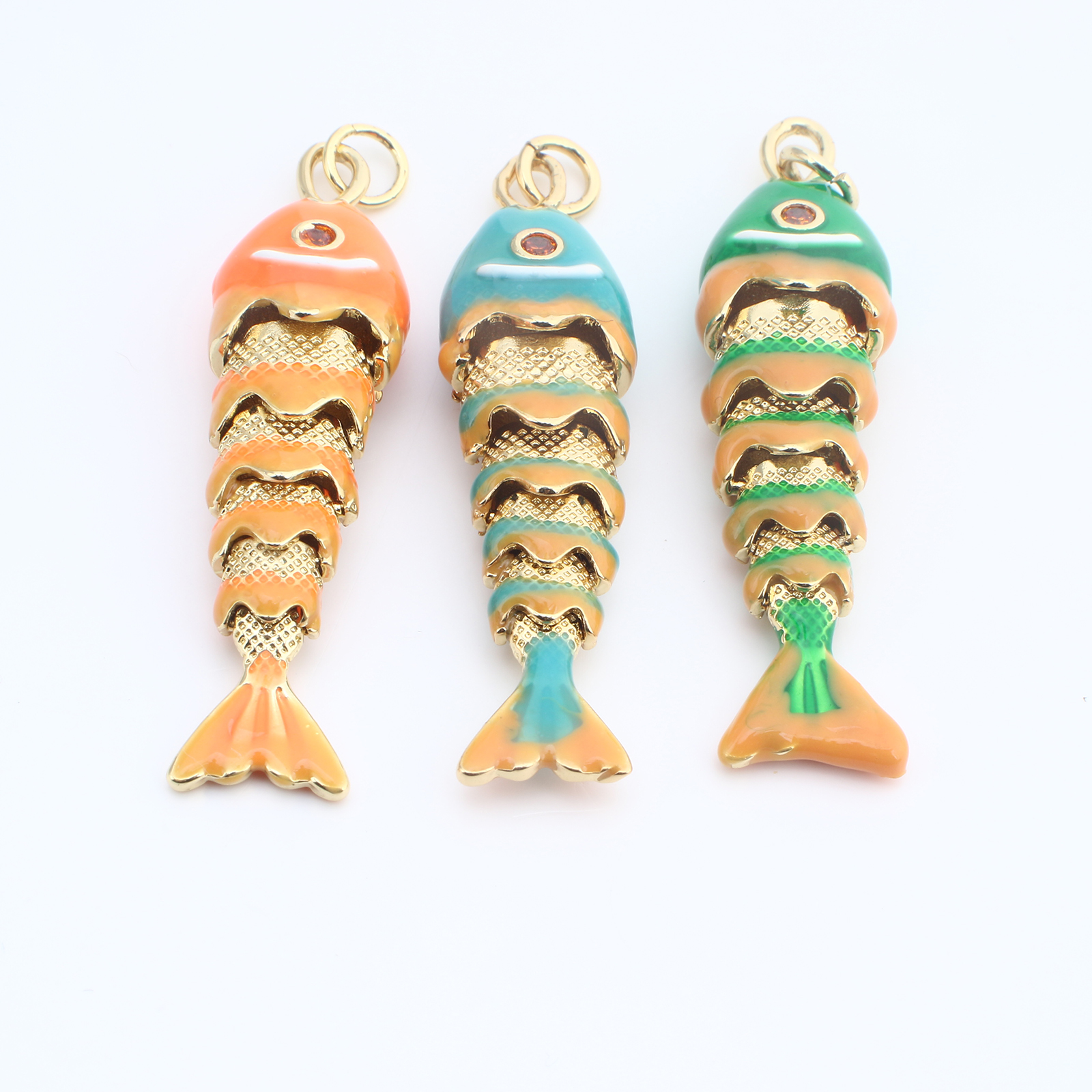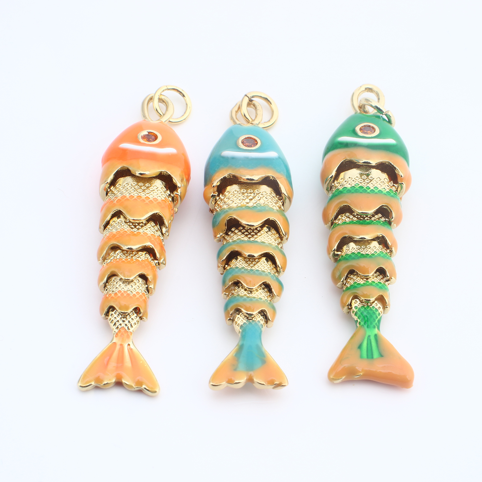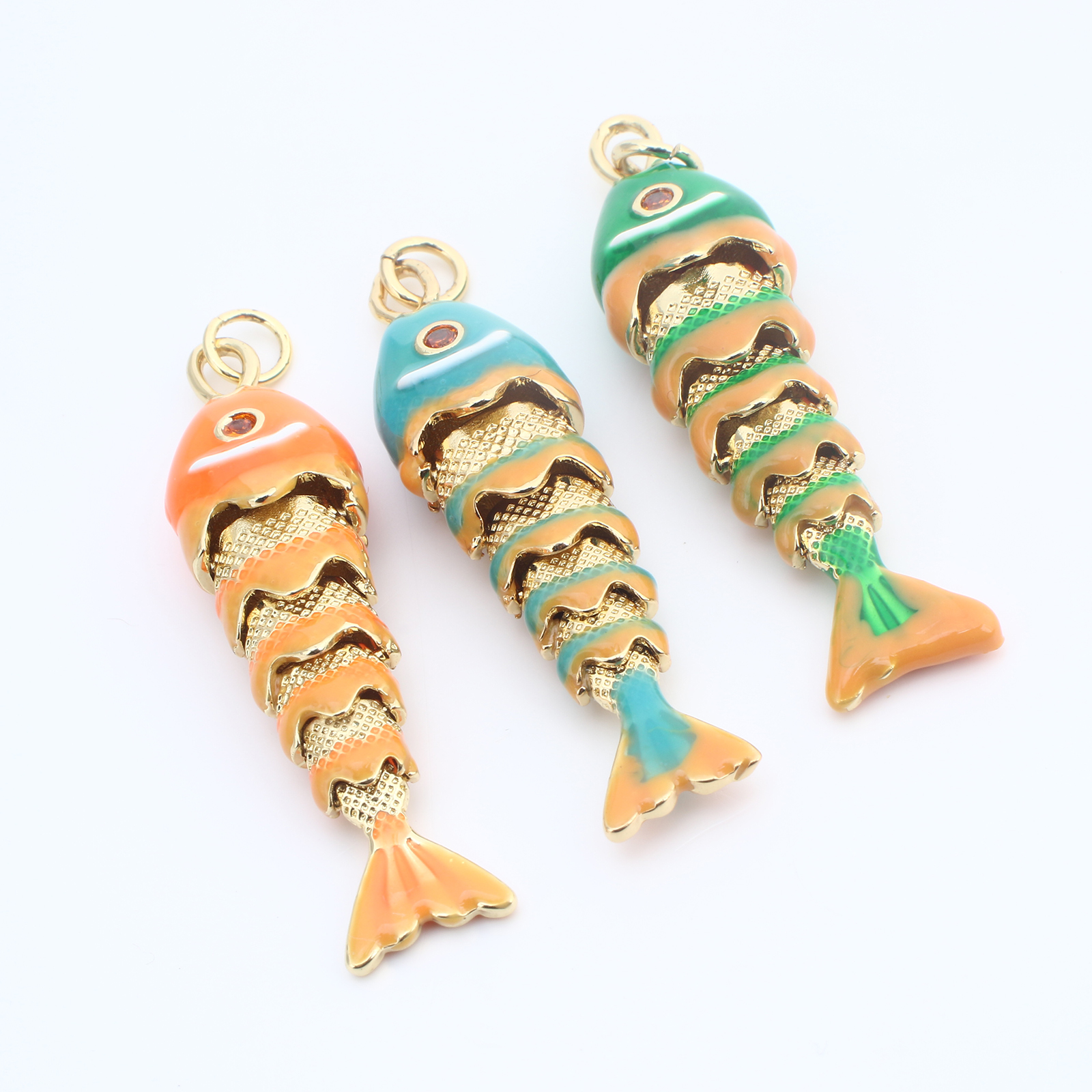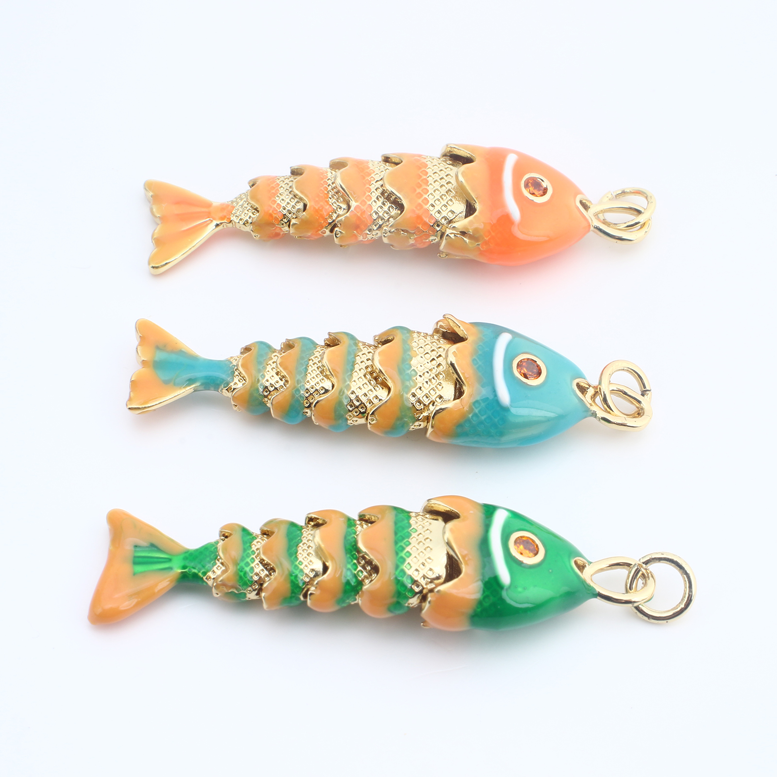 Kubinių Zirconia Mikro Pave Žalvaris Priedai veltiniams, vilna, Žalvarinis, Žuvis, padengtą, Pasidaryk pats & mikro nutiesti kubinių Zirconia & emalė, daugiau spalvų pasirinkimas, 41x11x7mm, Pardavė PC