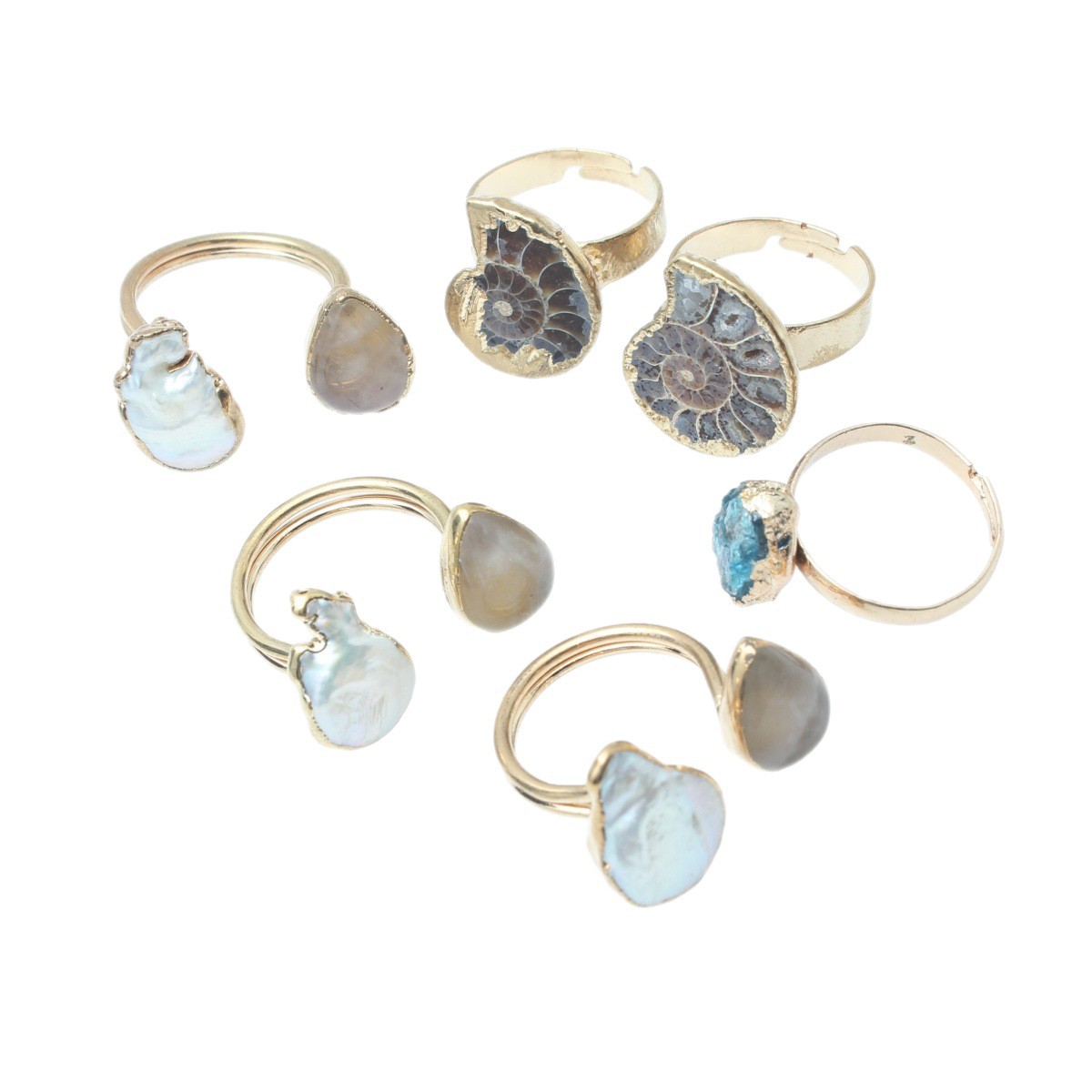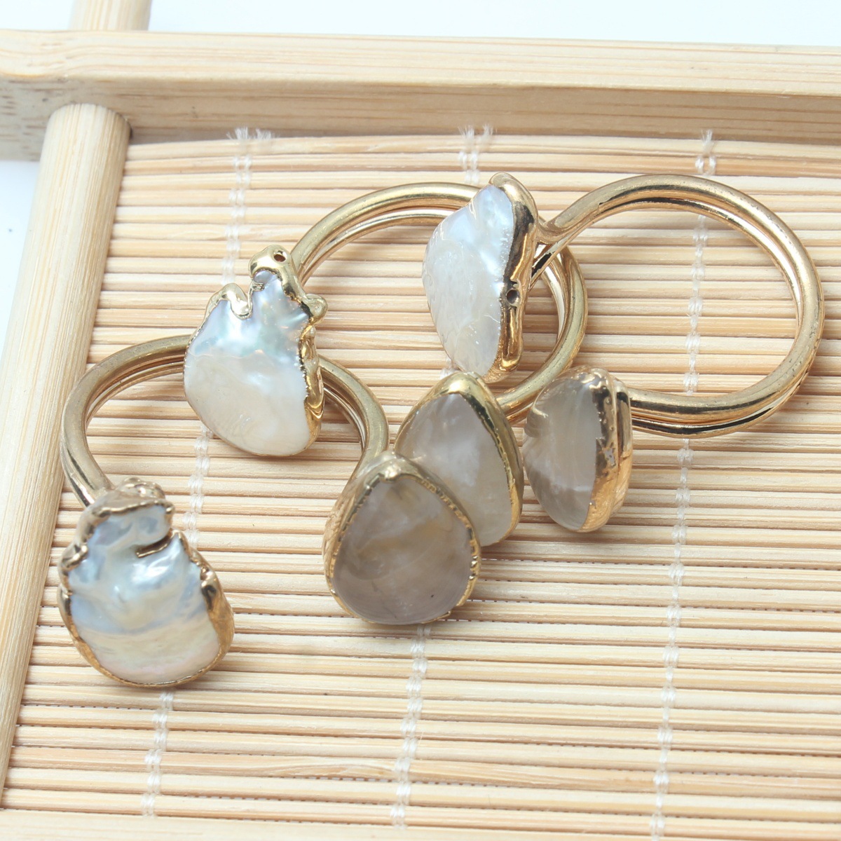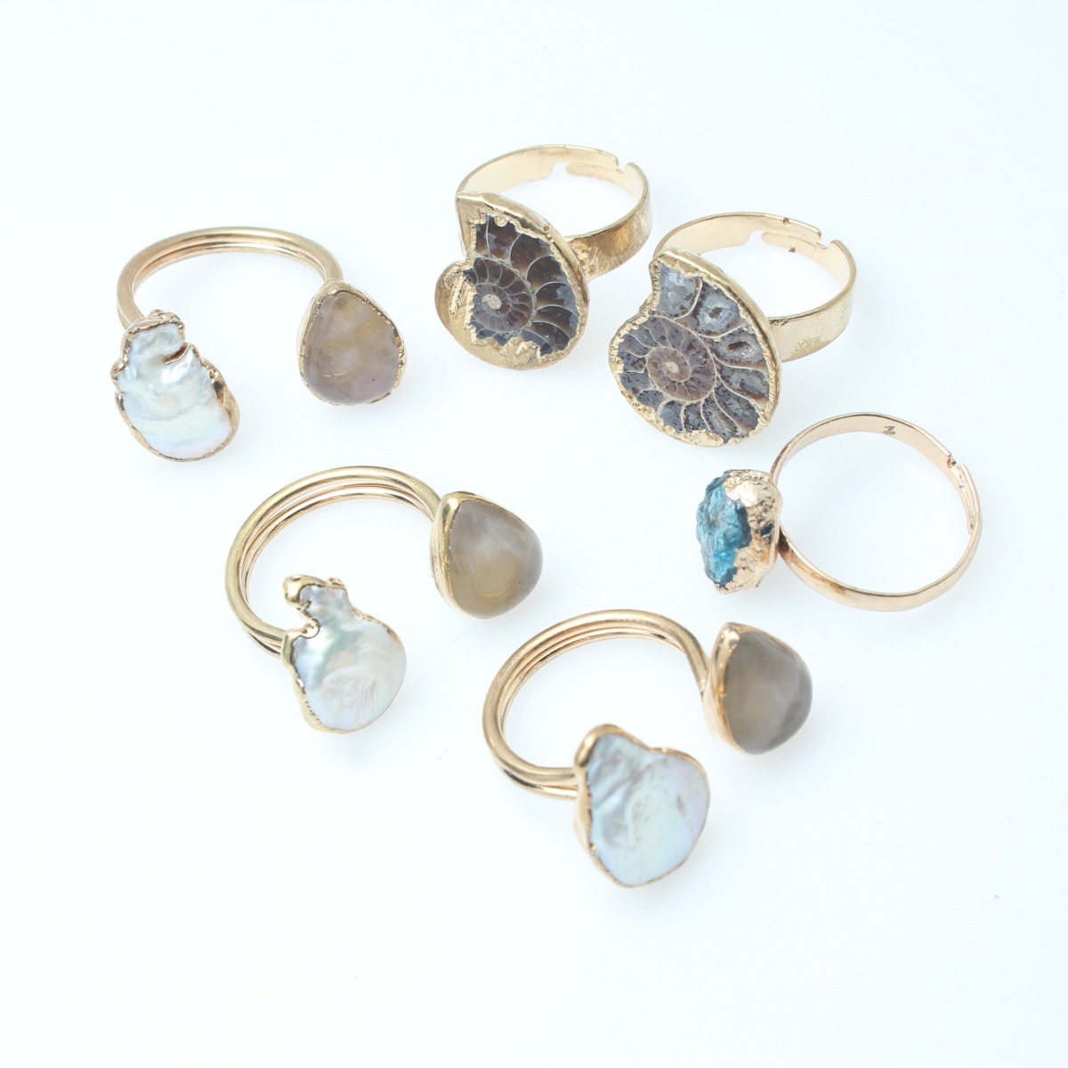 Natūralus akmuo Cuff Finger Ring, su Gėlo vandens perlų & Cinko lydinys, unisex & reguliuojamas & įvairių stilių pasirinkimas, Pardavė PC