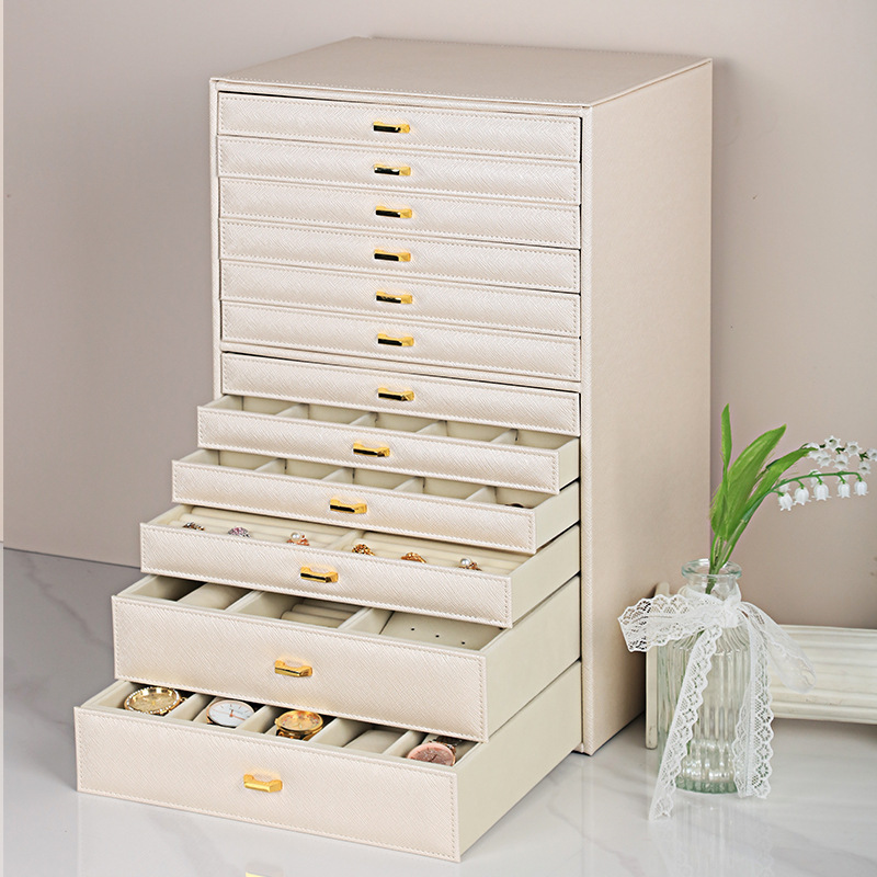 PU Daugiafunkcinis Papuošalų dėžutė, su Flocking Fabric & Mediena, atsparus dulkėms & 12-sluoksnis, daugiau spalvų pasirinkimas, 285x213x450mm, Pardavė PC