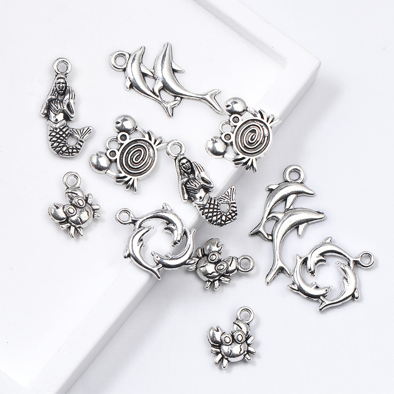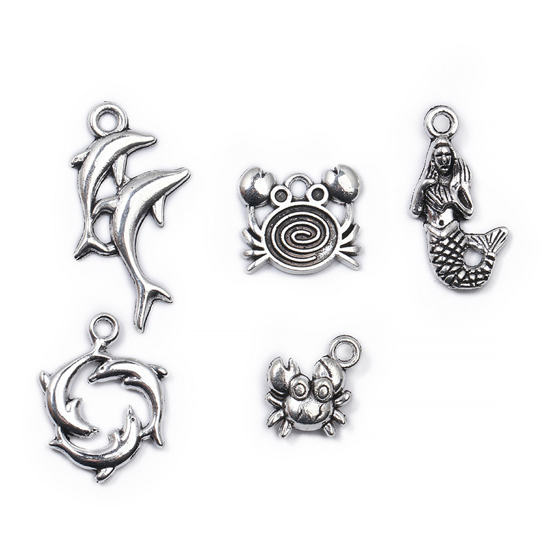 1:Dolphin 38.5x5mm0.9g2:Dolphin 20.5x16mm1.3g3:Crab 12x10.5mm0.9g4:Crab 13.5x15mm1.4g5:Mermaid 22.5x10.5mm1.4g