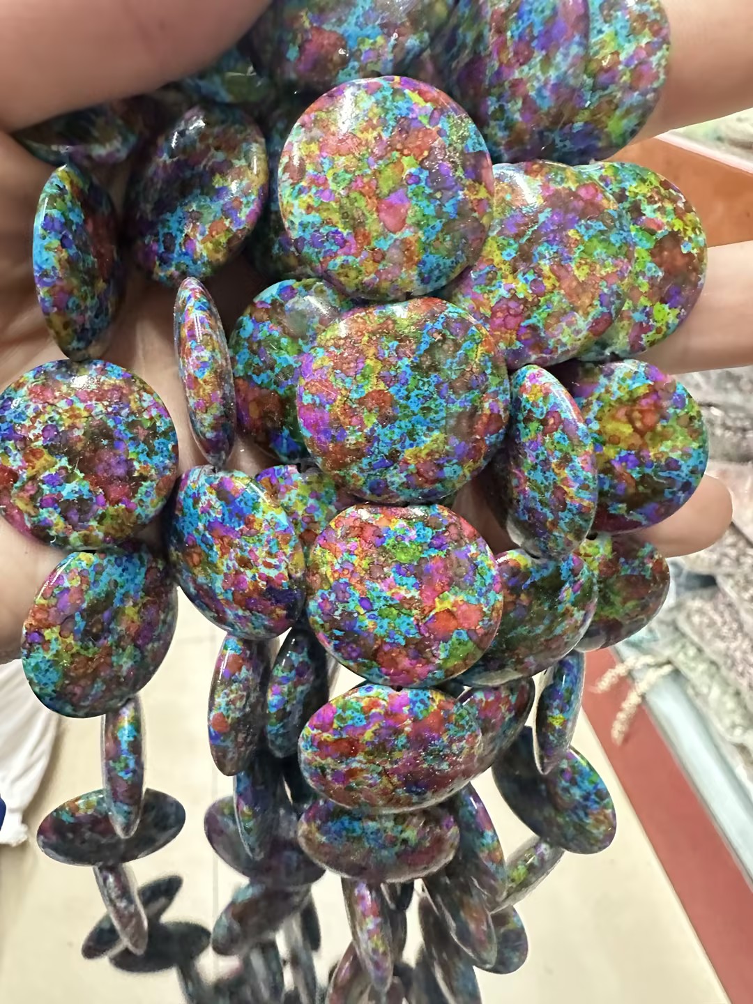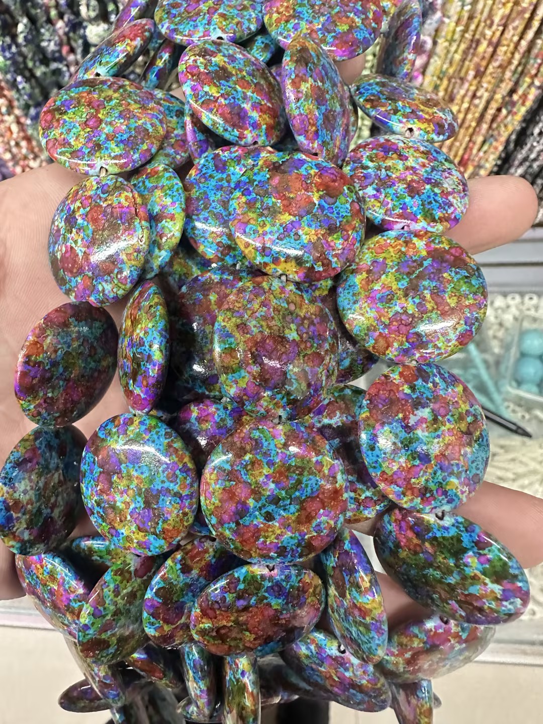 Sintetinis turkis Rutuliukas, Butas Round, Pasidaryk pats, multi-colored, 25mm, Skylė:Apytiksliai 1mm, Apytiksliai 17kompiuteriai/Strand, Parduota už Apytiksliai 39 cm Strand