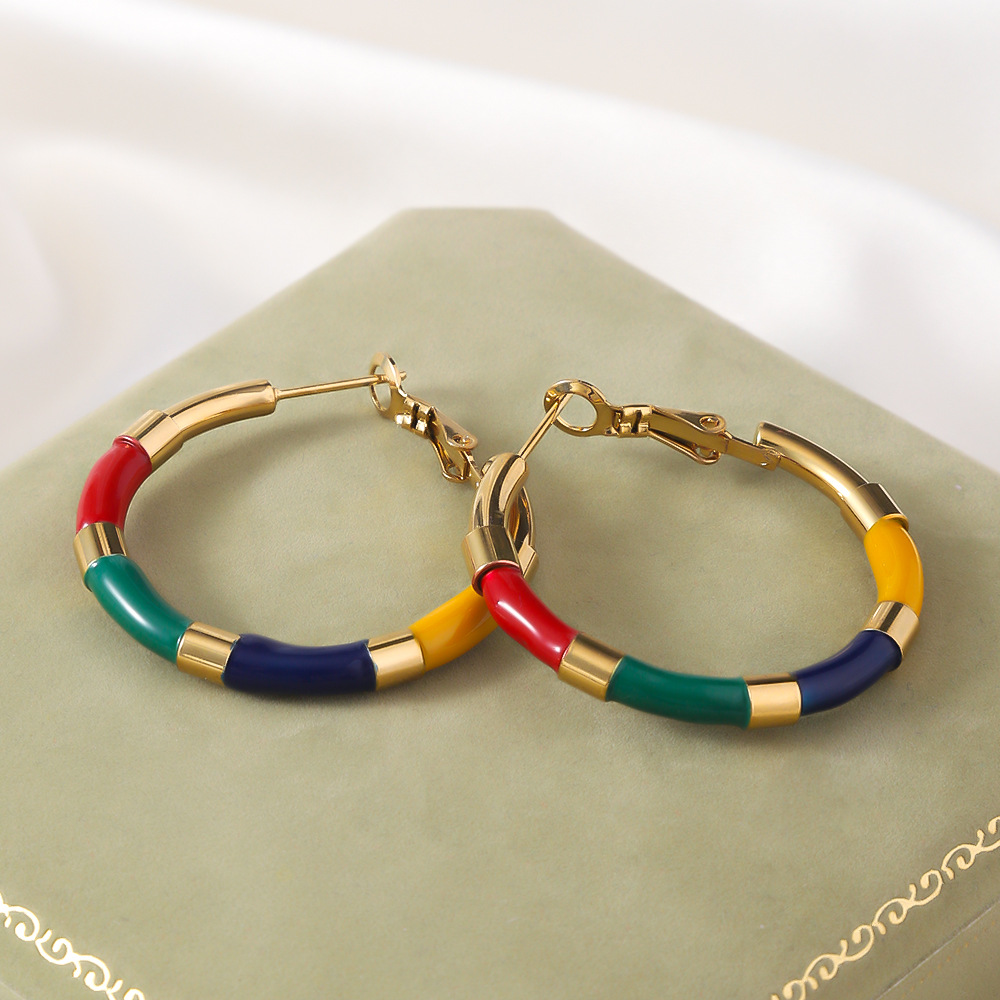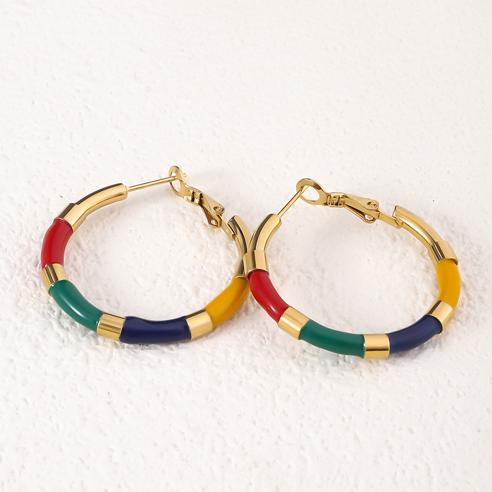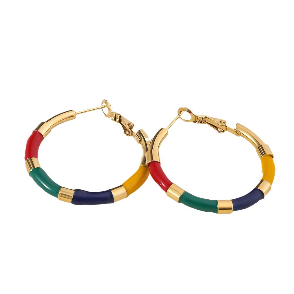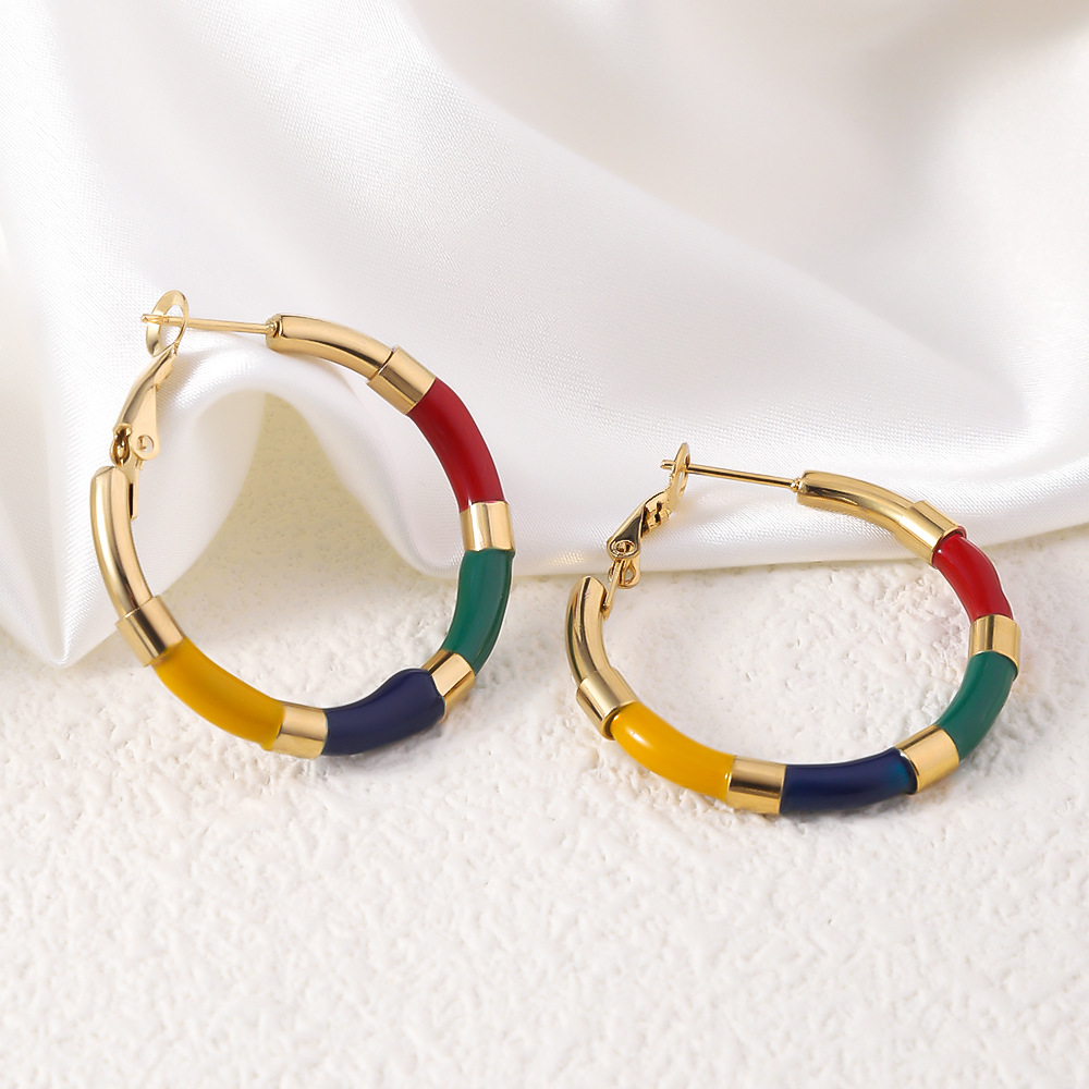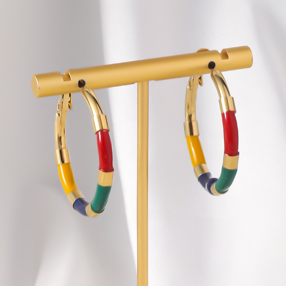 304 roestvrij staal Hendel weer Earring, 18K vergulde, mode sieraden & voor vrouw & glazuur, multi-gekleurde, Verkocht door pair
