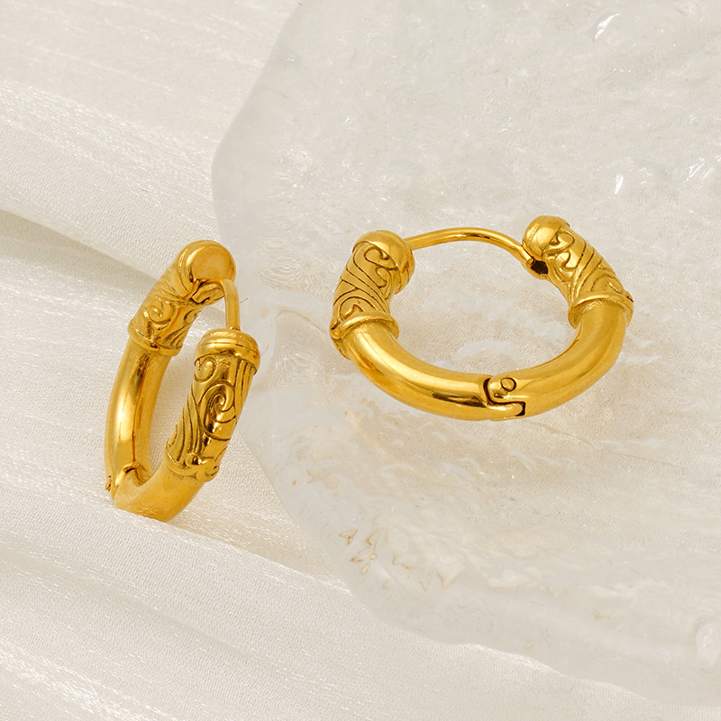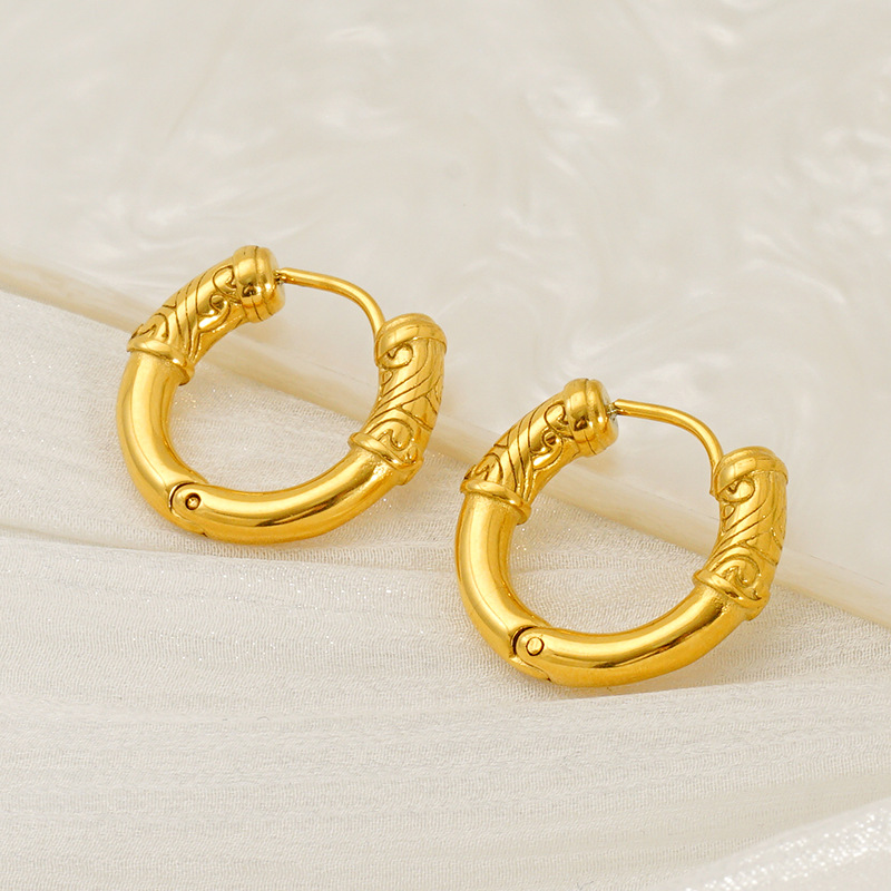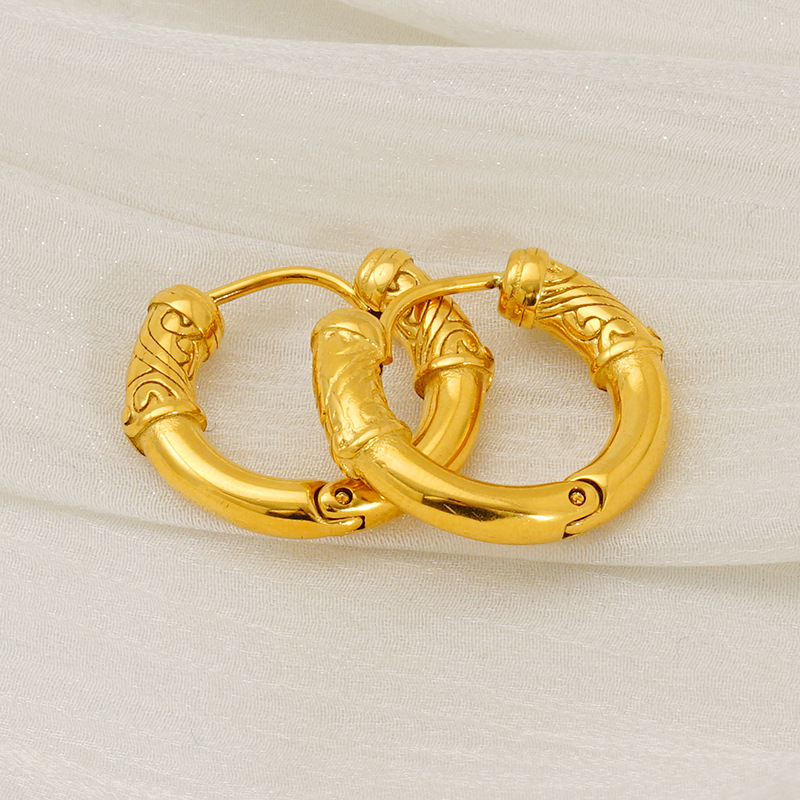 Stainless Steel Lever Terug Earring, 304 roestvrij staal, 18K verguld, mode sieraden & reliëf & voor vrouw, Verkocht door pair