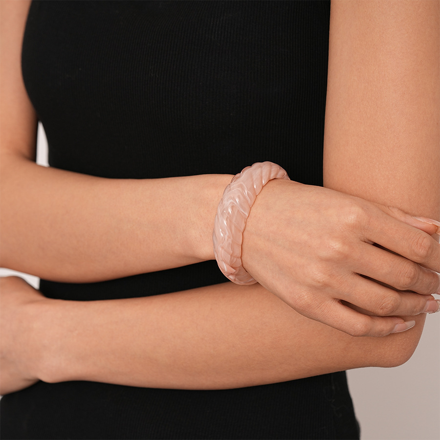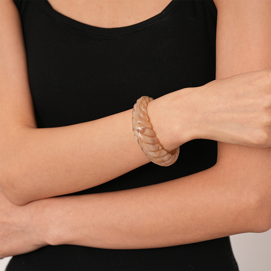 1:light brown acrylic threaded opening bracelet2:Pink Acrylic Threaded Opening Bracelet