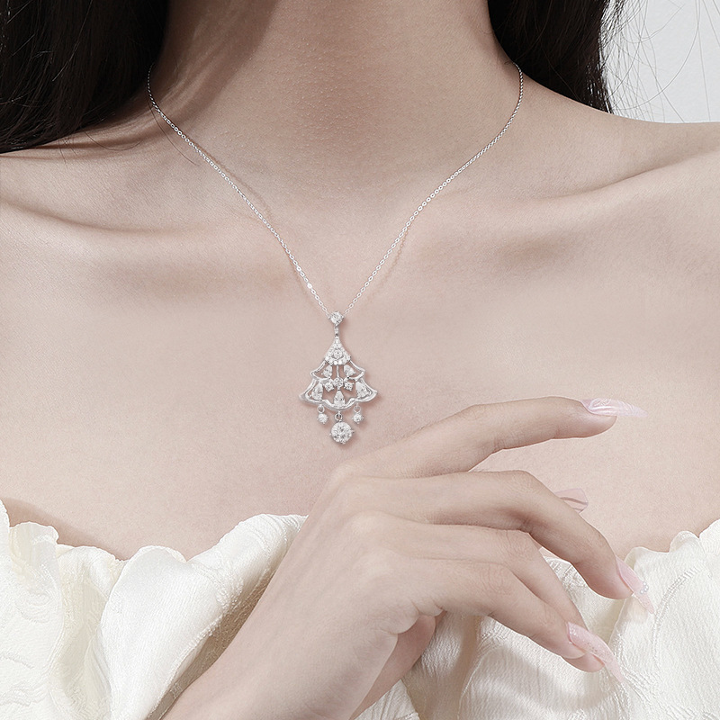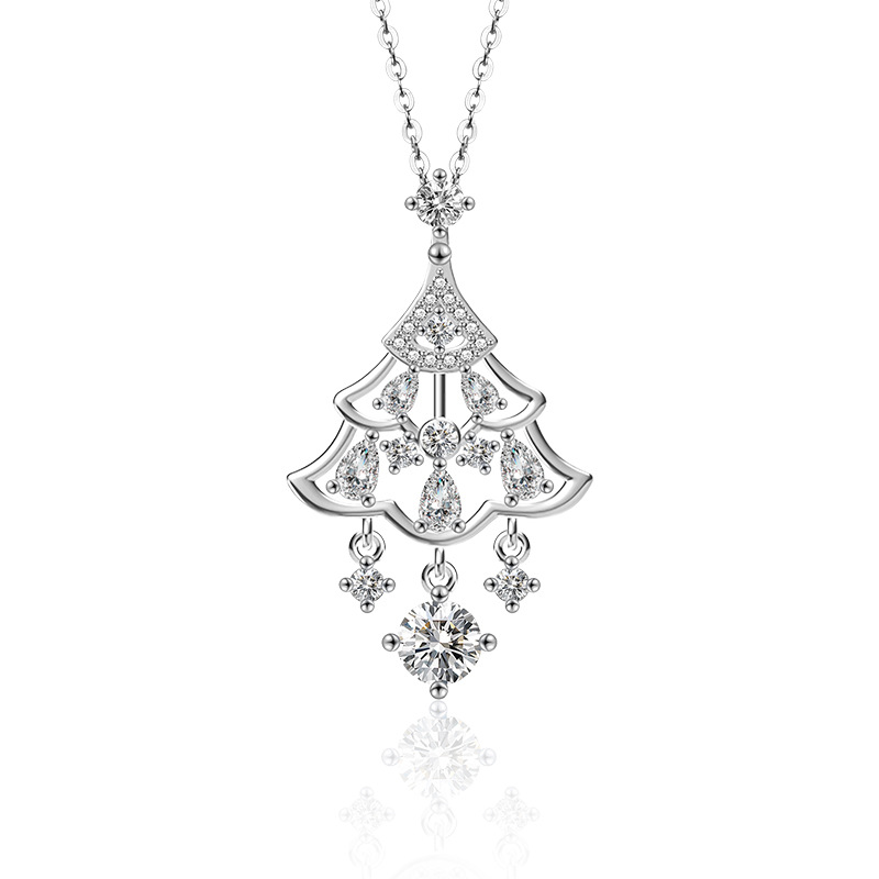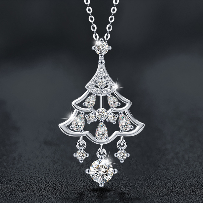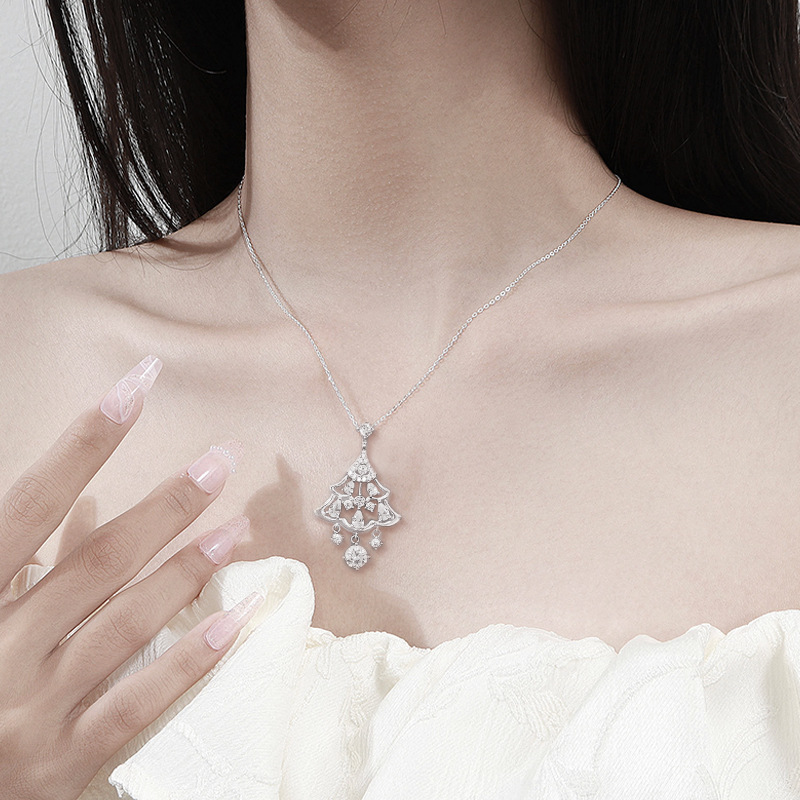 925 sterling zilver Halsketting, met Moissanite, met 2inch extender keten, Kerstboom, geplatineerd, voor vrouw, Lengte Ca 15.7 inch, Verkocht door PC