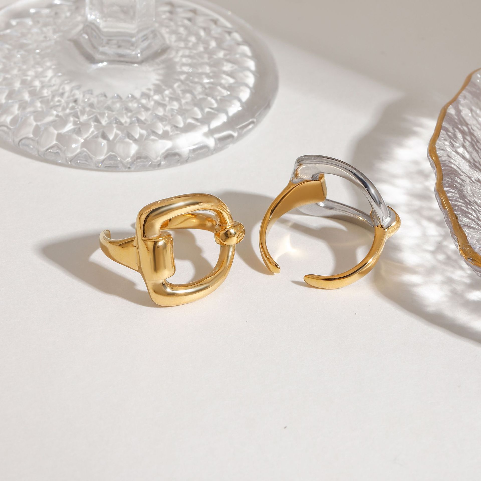 Vinger Ring in edelstaal, 304 roestvrij staal, met Plastic Pearl, plated, mode sieraden & voor vrouw, gouden, Verkocht door PC