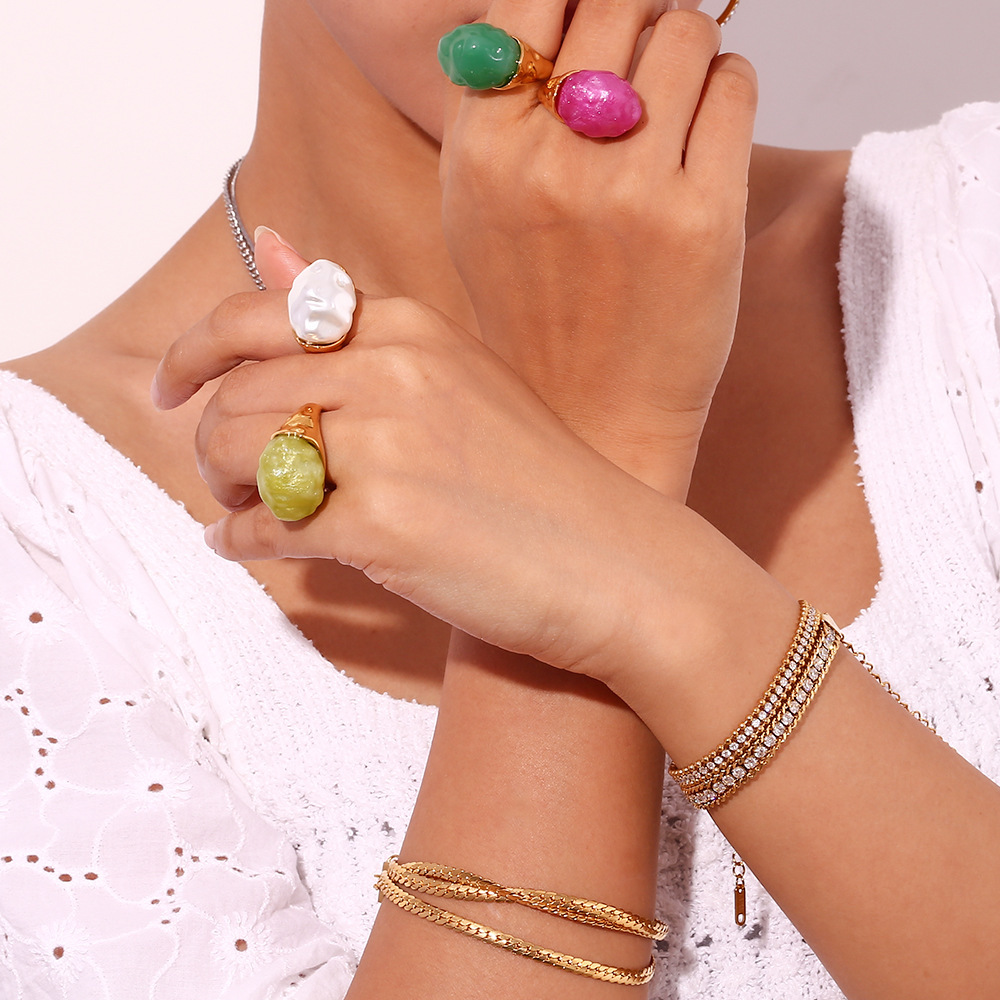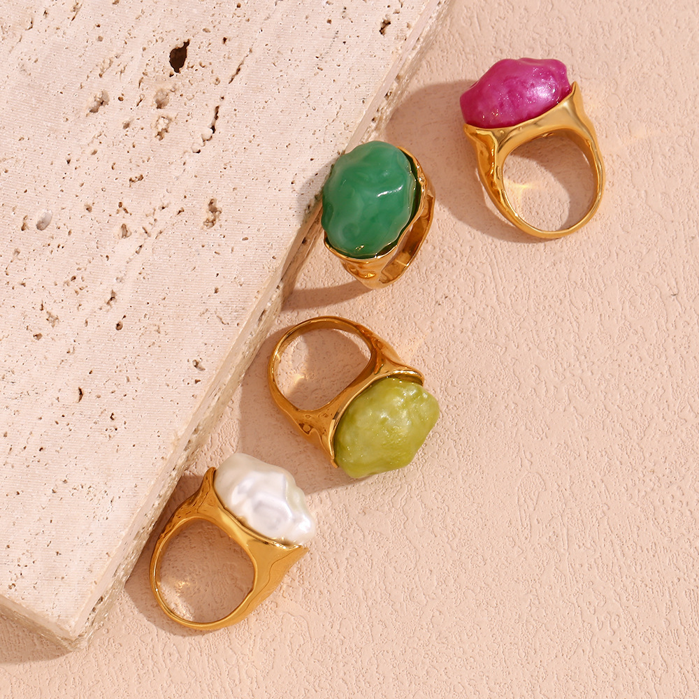 1:Acrylic shaped main stone vintage ring-gold dark green2:Acrylic shaped main stone vintage ring-gold light green3:Acrylic shaped main stone vintage ring-gold pearl4:Acrylic shaped main stone retro ring-gold rose red