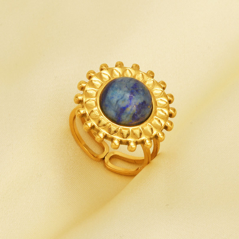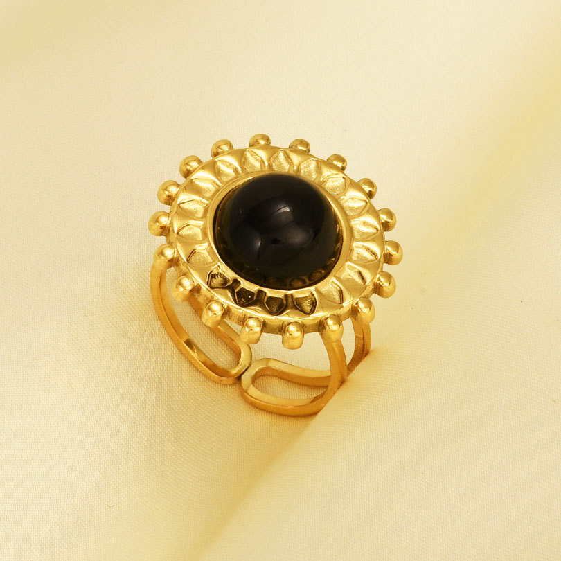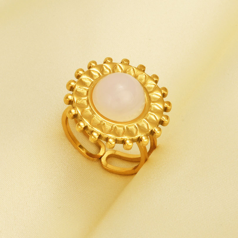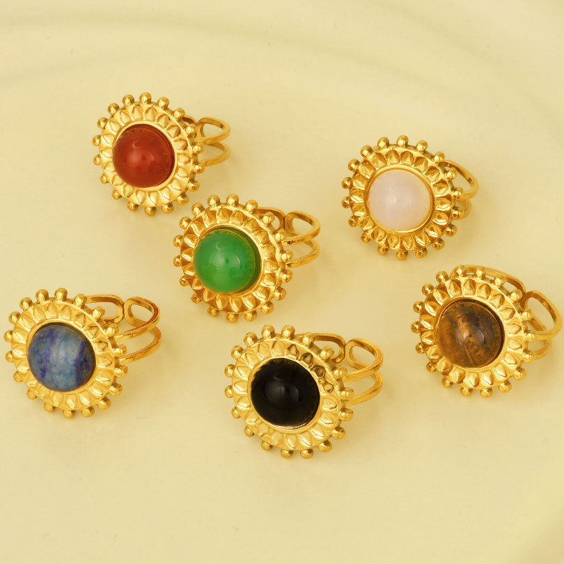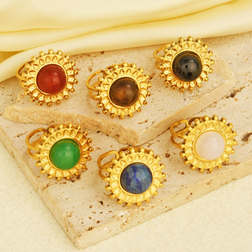 Vinger Ring in edelstaal, 304 roestvrij staal, met Edelsteen, Bloem, gold plated, voor vrouw, meer kleuren voor de keuze, Verkocht door PC