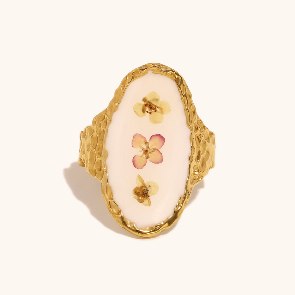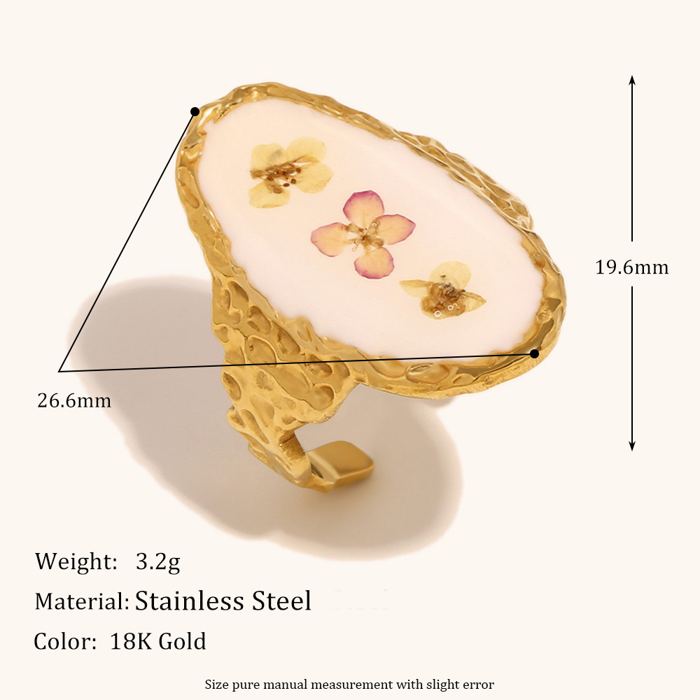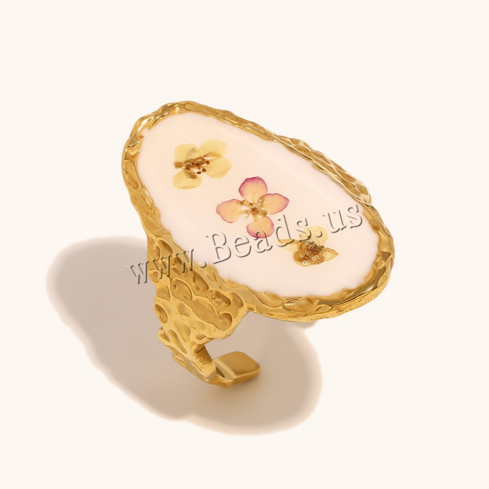 Vinger Ring in edelstaal, 304 roestvrij staal, met Gedroogde bloem, gold plated, voor vrouw & glazuur, Verkocht door PC
