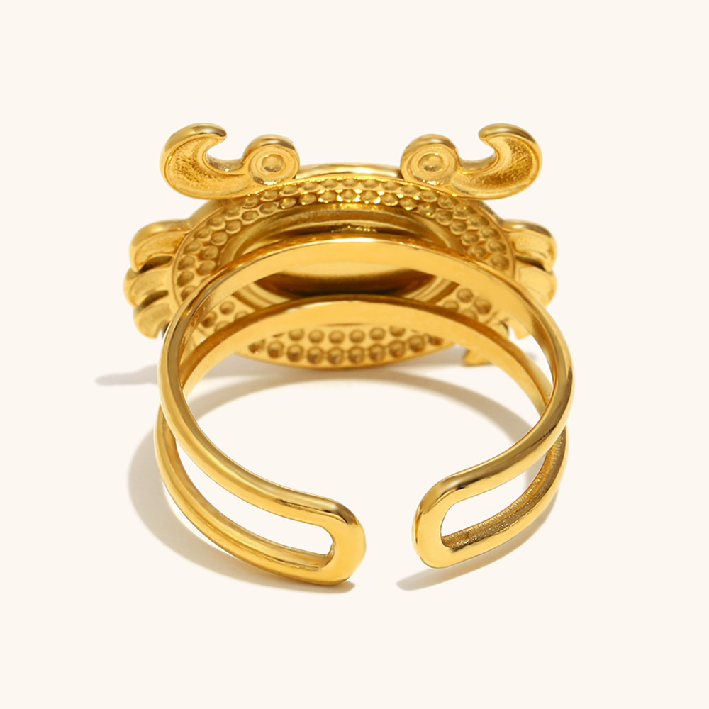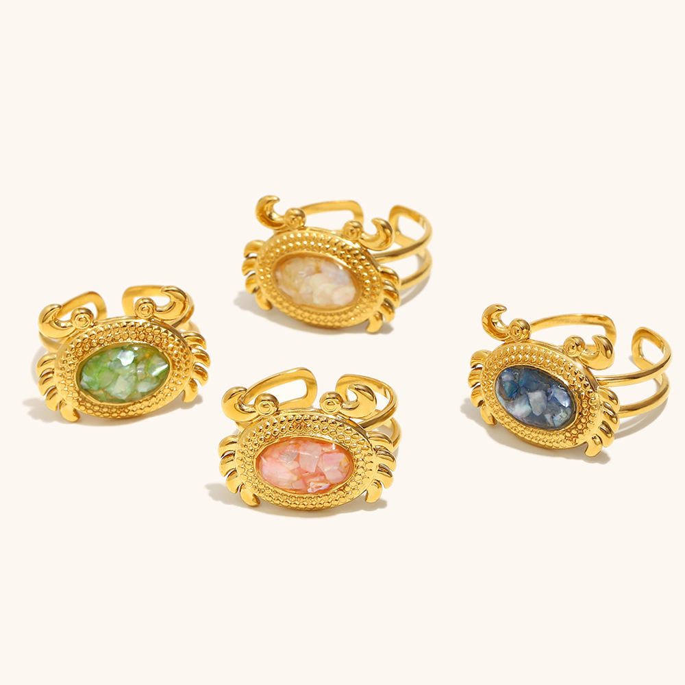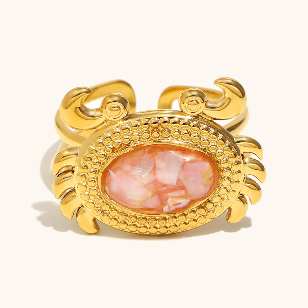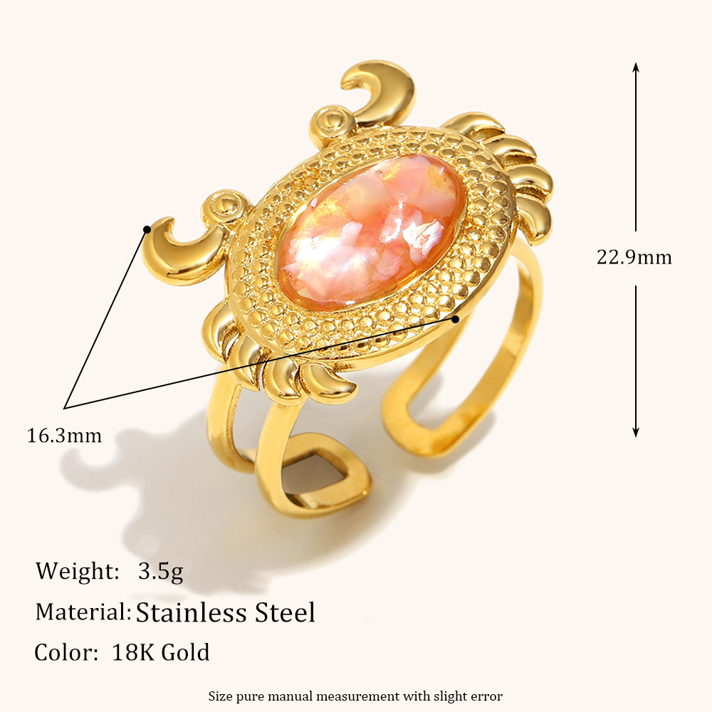 Vinger Ring in edelstaal, 304 roestvrij staal, met Hars, Krab, gold plated, mode sieraden, meer kleuren voor de keuze, Verkocht door PC