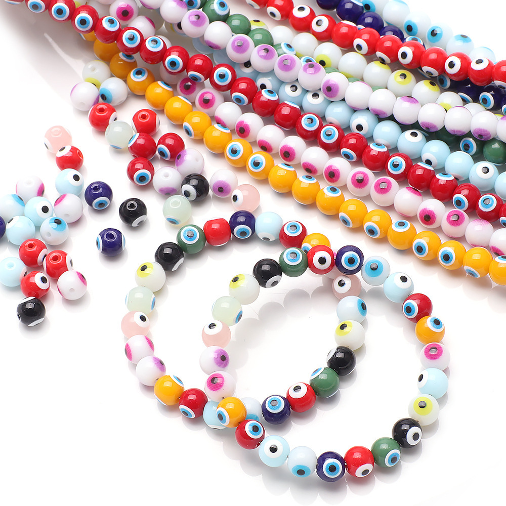 Boze oog glasparels, Glas, Afdrukken, DIY, meer kleuren voor de keuze, 50pC's/Strand, Verkocht door Strand