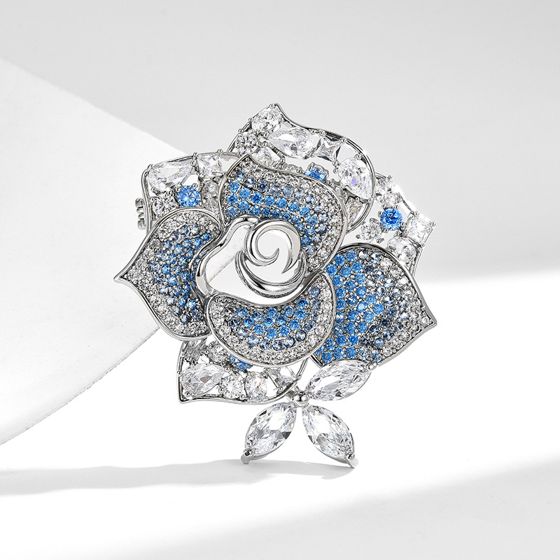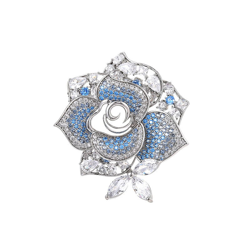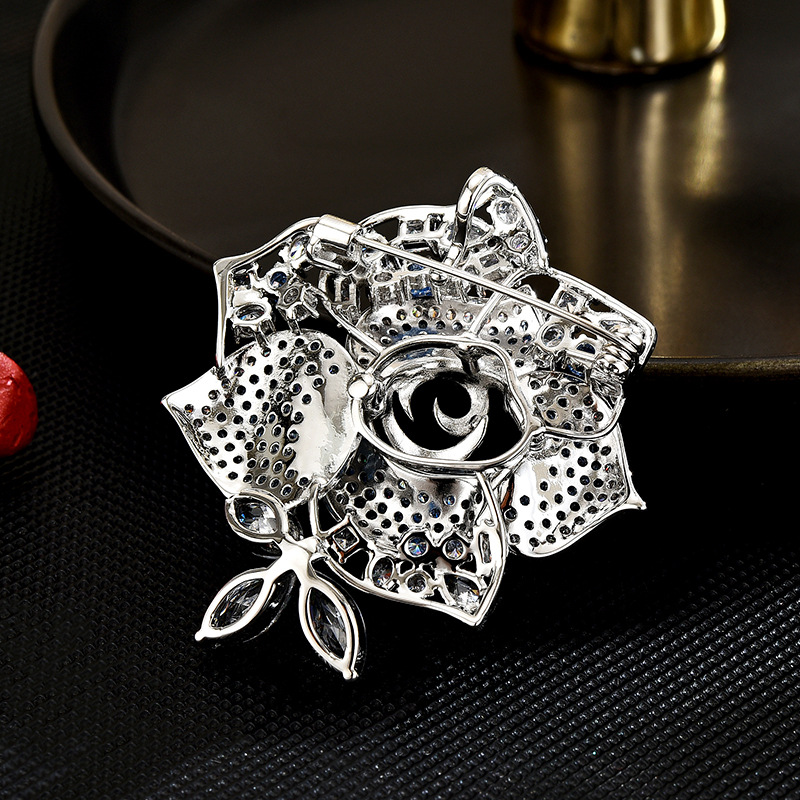 Fashion Broche Sieraden, Messing, plated, micro pave zirconia & voor vrouw, zilver, 48x44mm, Verkocht door PC