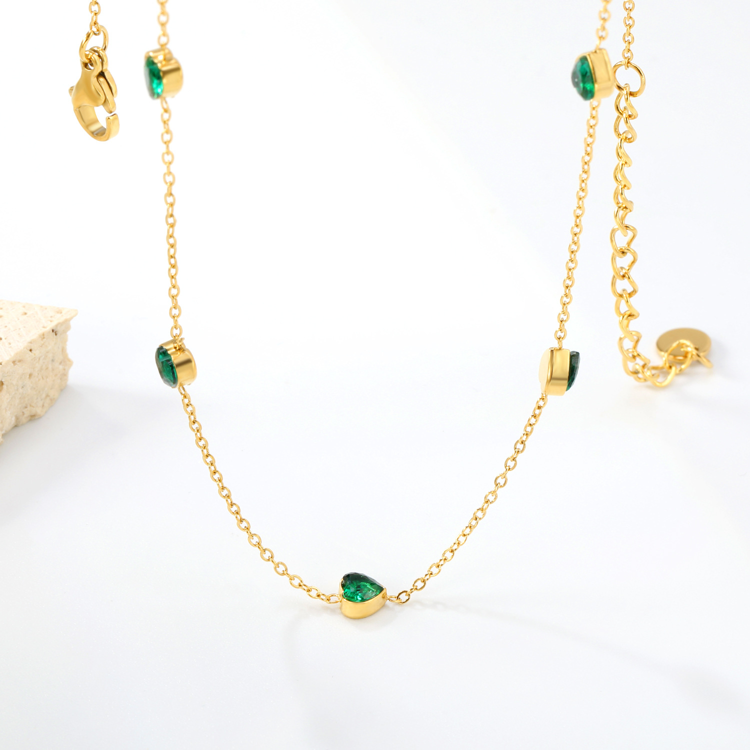Roestvrij staal halskettingen, 304 roestvrij staal, met Cubic Zirconia, met 5cm extender keten, gold plated, mode sieraden & voor vrouw, Lengte 40 cm, Verkocht door PC