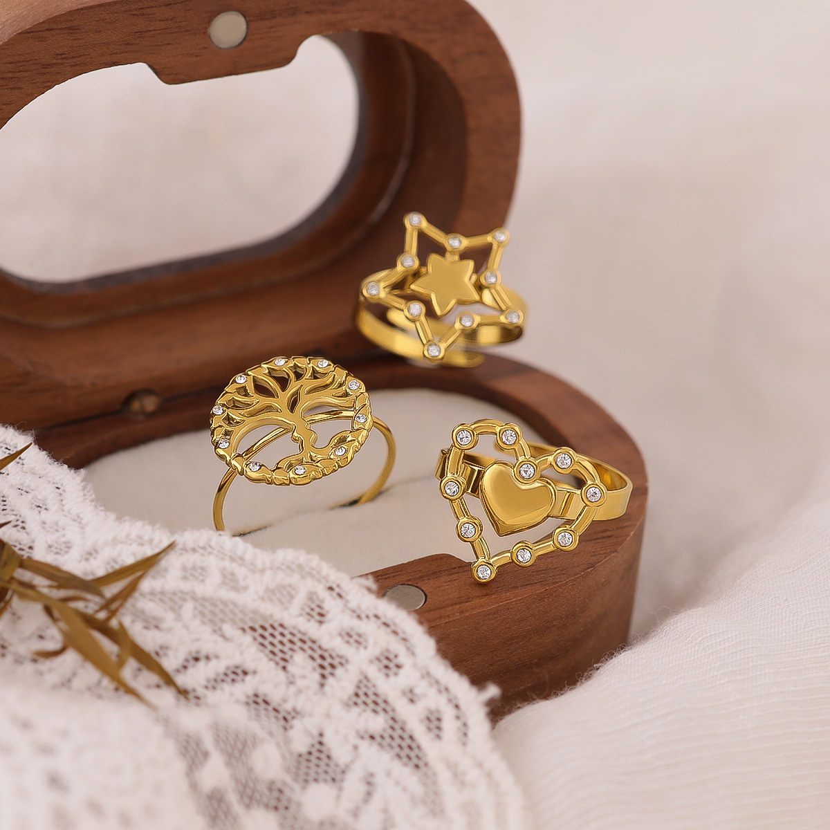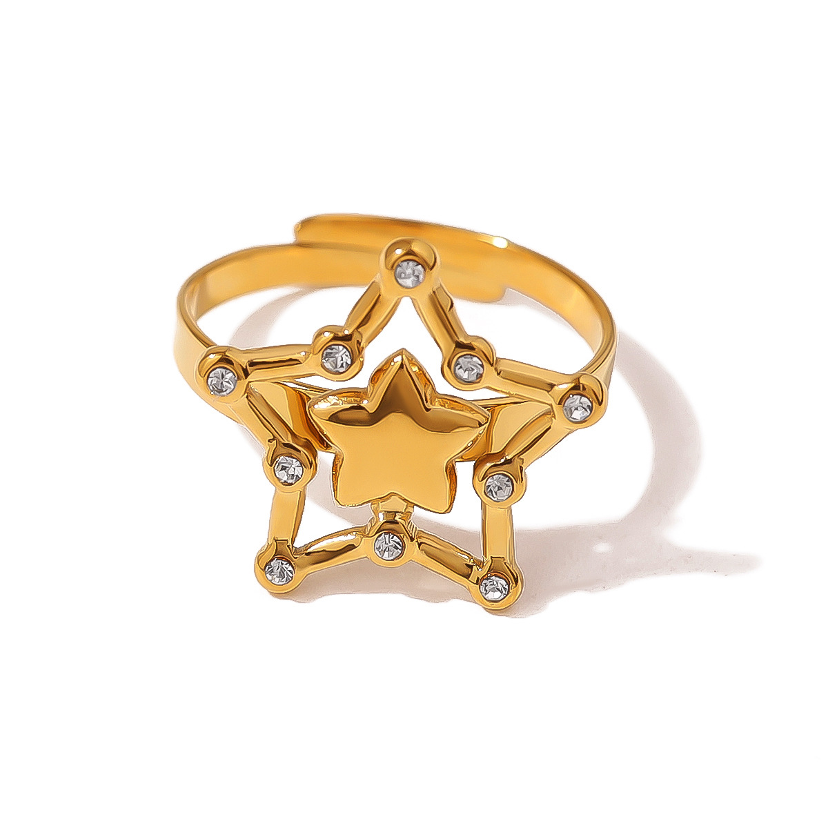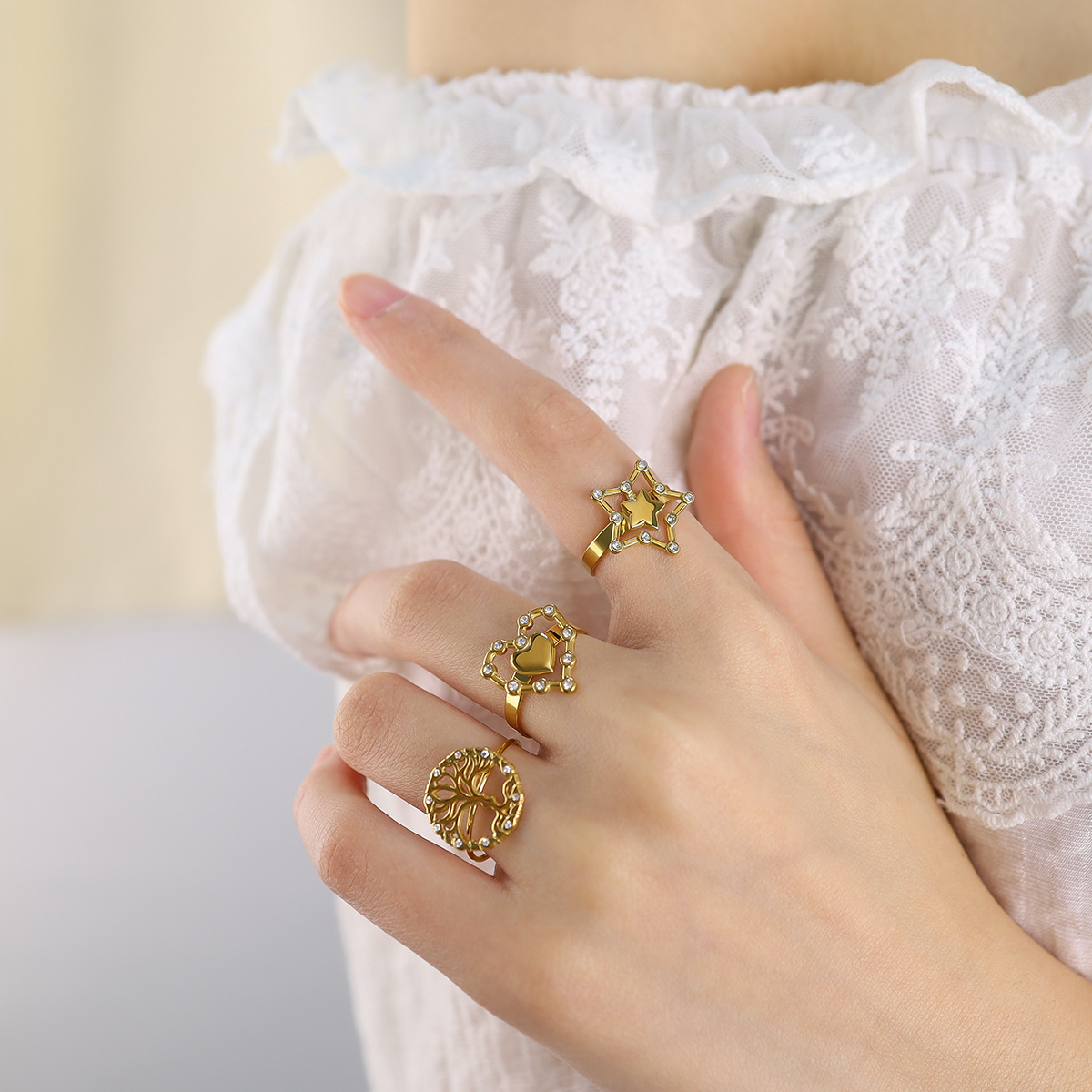 Roestvast staal vinger ring, 304 roestvrij staal, met Kristal, 18K verguld, verschillende stijlen voor de keuze & voor vrouw & hol, Verkocht door PC