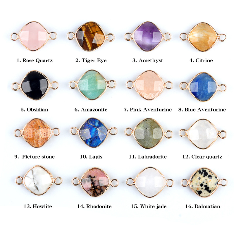 1:Tiger eye stone2:Amethyst3:Lapis lazuli4:Picture stone5:Amazon6:Blue aventurine7:Spotted stone8:Elongated stone9:Citrine10:Black obsidian11:Pink aventurine12:Rose quartz13:White crystal14:White jade15:White turquoise