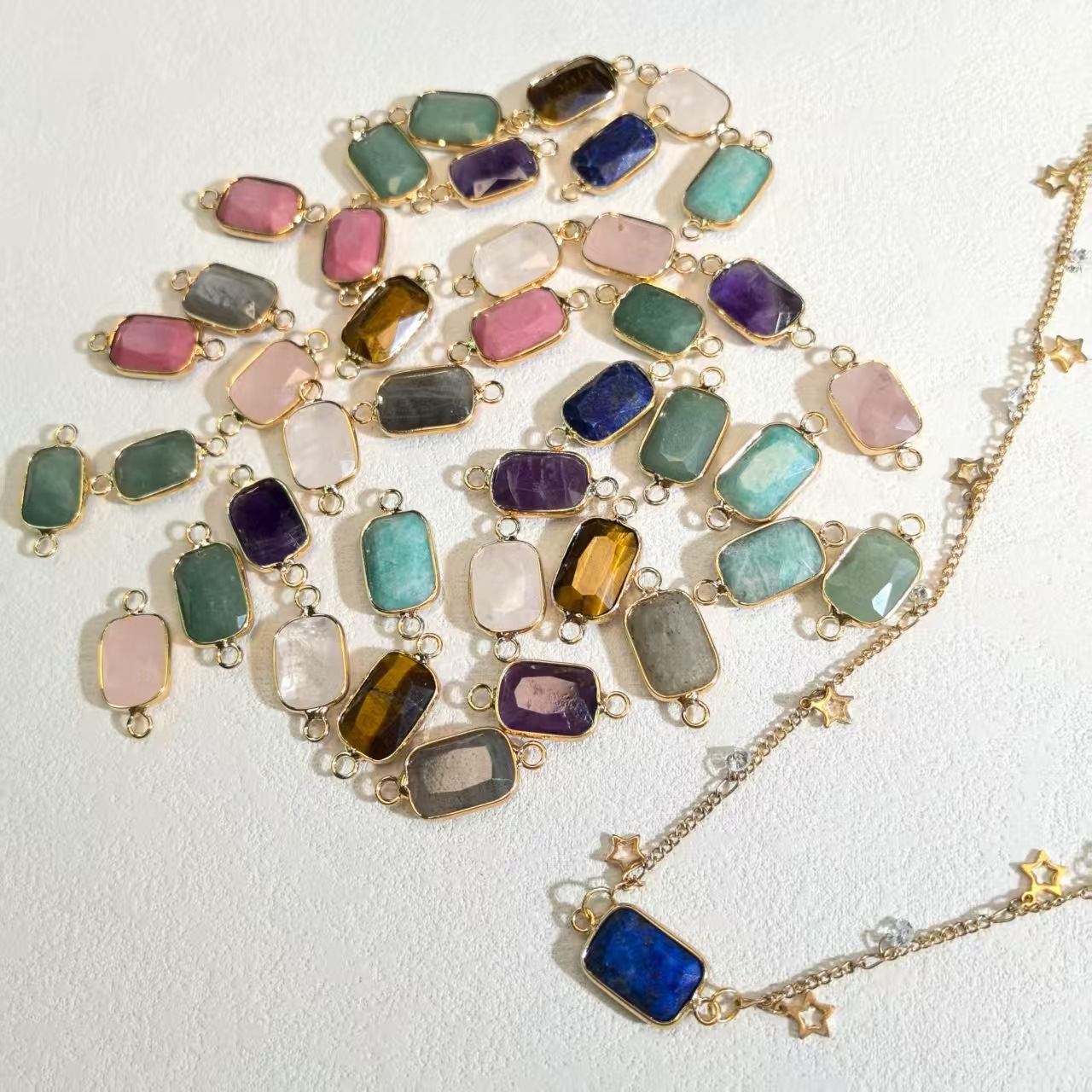 Edelsteen Connector, met Messing, Geometrisch Patroon, gold plated, DIY & verschillende materialen voor de keuze & gefacetteerde, 16x12mm, Verkocht door PC