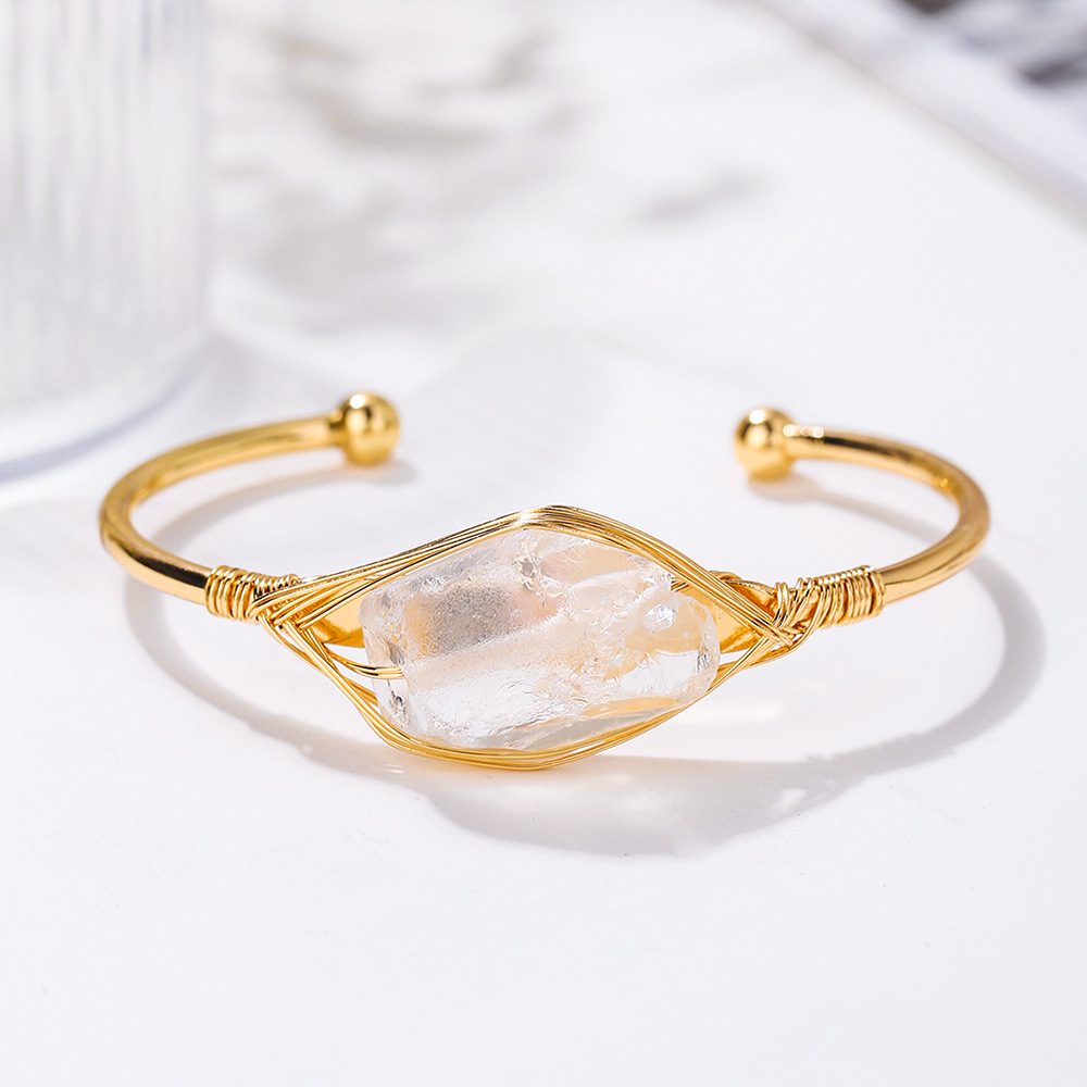 Edelsteen Manchet Bangle, met koperdraad & 304 roestvrij staal, gold plated, mode sieraden & verschillende materialen voor de keuze & uniseks, Verkocht door PC