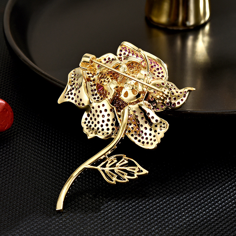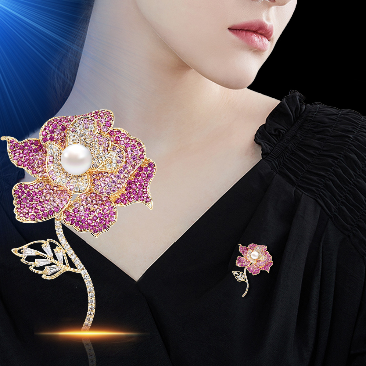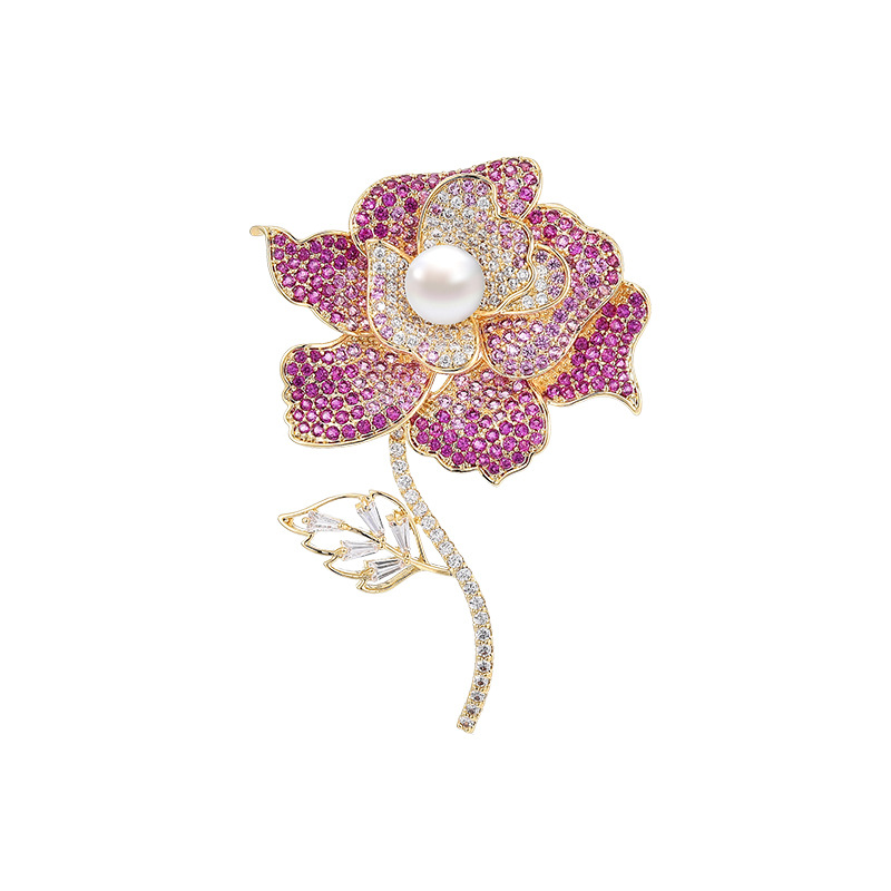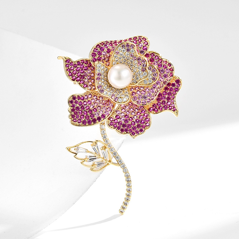 Fashion Broche Sieraden, Messing, met Zoetwater Parel, plated, micro pave zirconia & voor vrouw, gouden, 39x55mm, Verkocht door PC