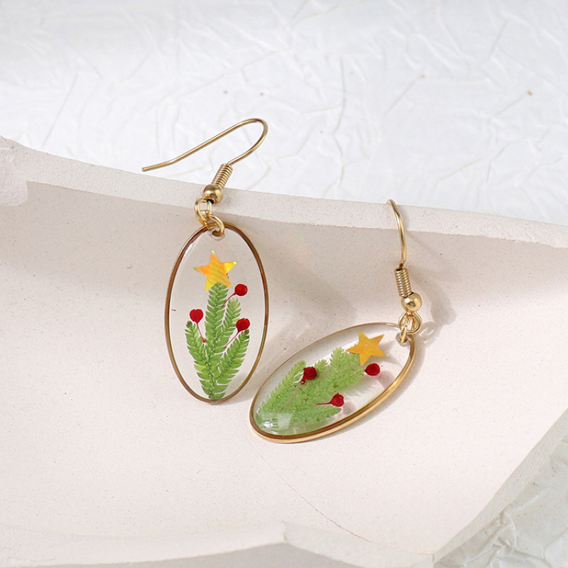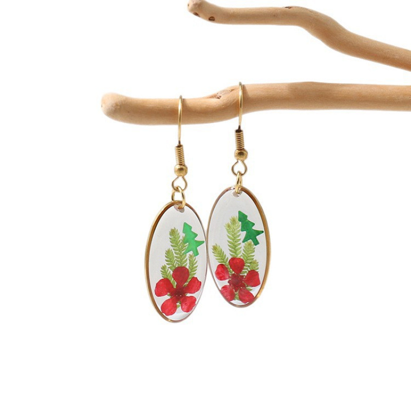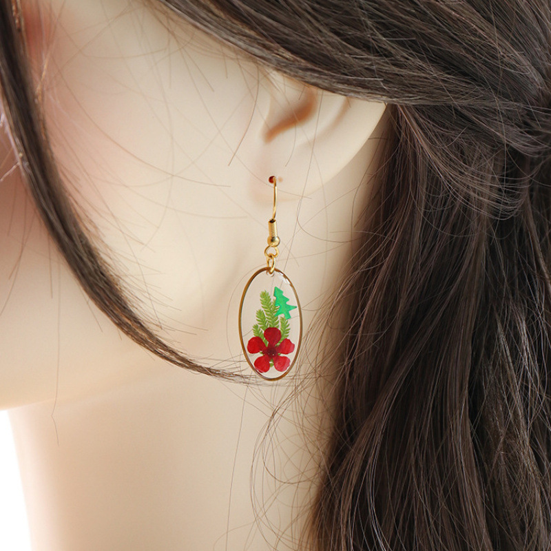Hars Drop Earring, met Gedroogde bloem & 304 roestvrij staal, Plat Ovaal, plated, voor vrouw & epoxy sticker, meer kleuren voor de keuze, 14.50x26mm, Verkocht door pair