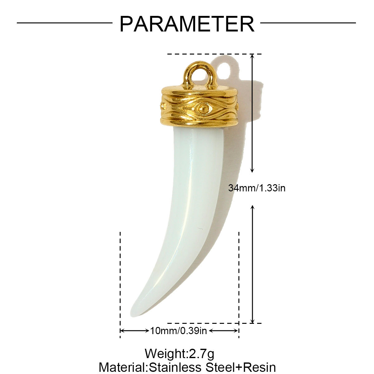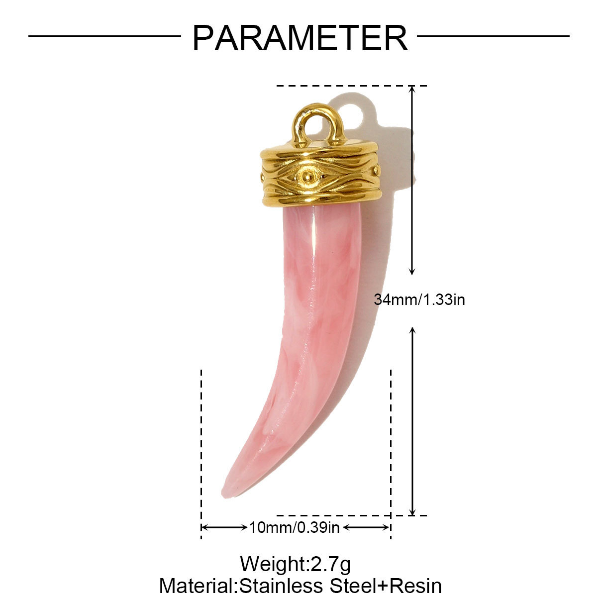 Hars hanger, 304 roestvrij staal, met Hars, Hoorn, gold plated, DIY, meer kleuren voor de keuze, 10x34mm, 3pC's/Bag, Verkocht door Bag