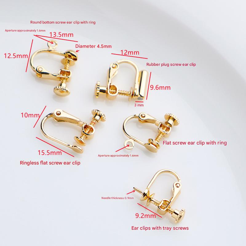 1:Ring-free flat-bottom screw ear clip2:Flat bottom screw ear clip with ring3:Round bottom screw ear clip with ring4:With tray screw ear clip5:Screw ear clip with rubber plug