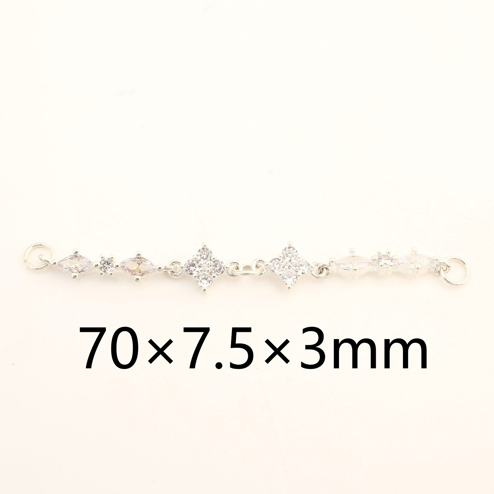 Messing Extender Chain, DIY & micro pave zirconia, zilver, 70x7.50x3mm, Verkocht door PC