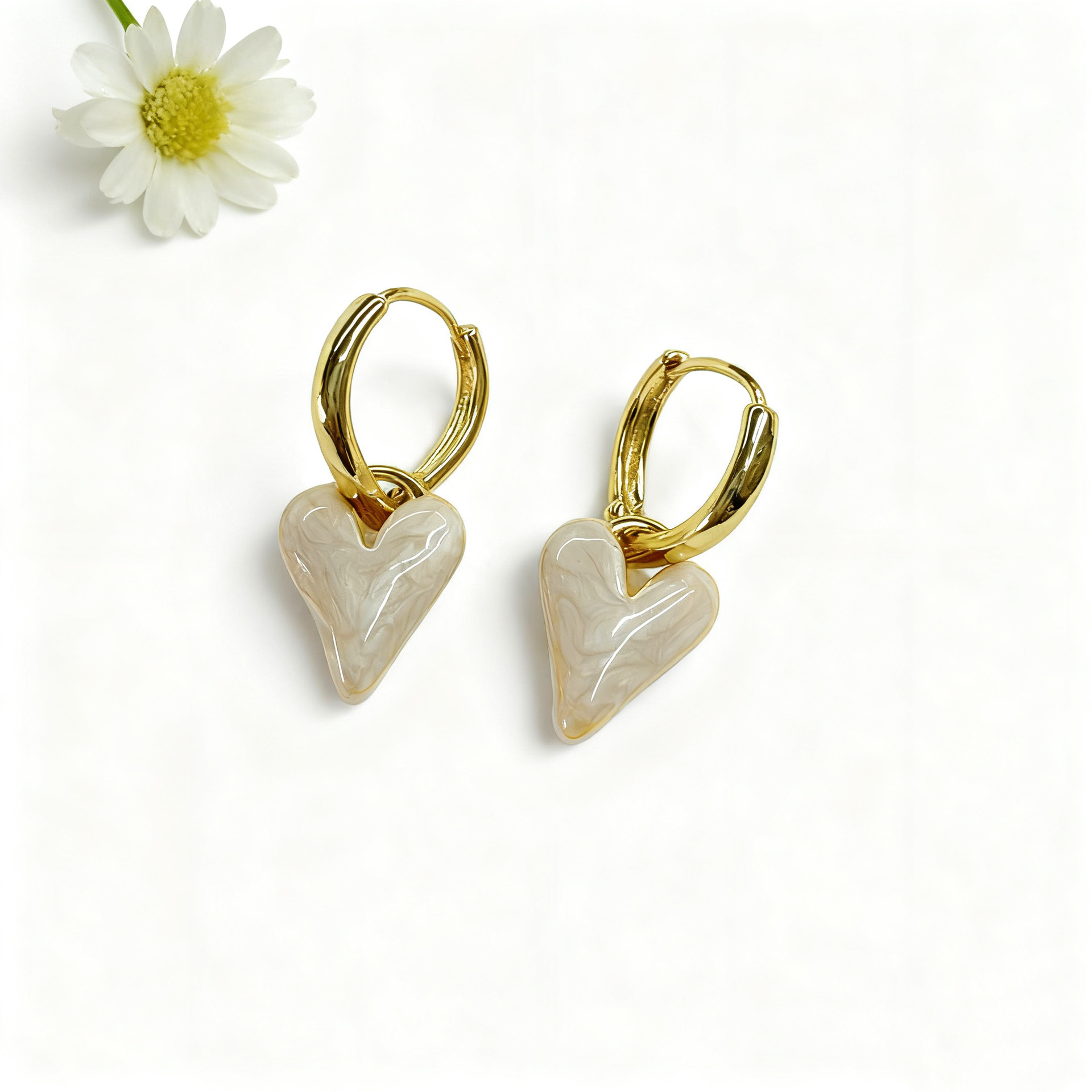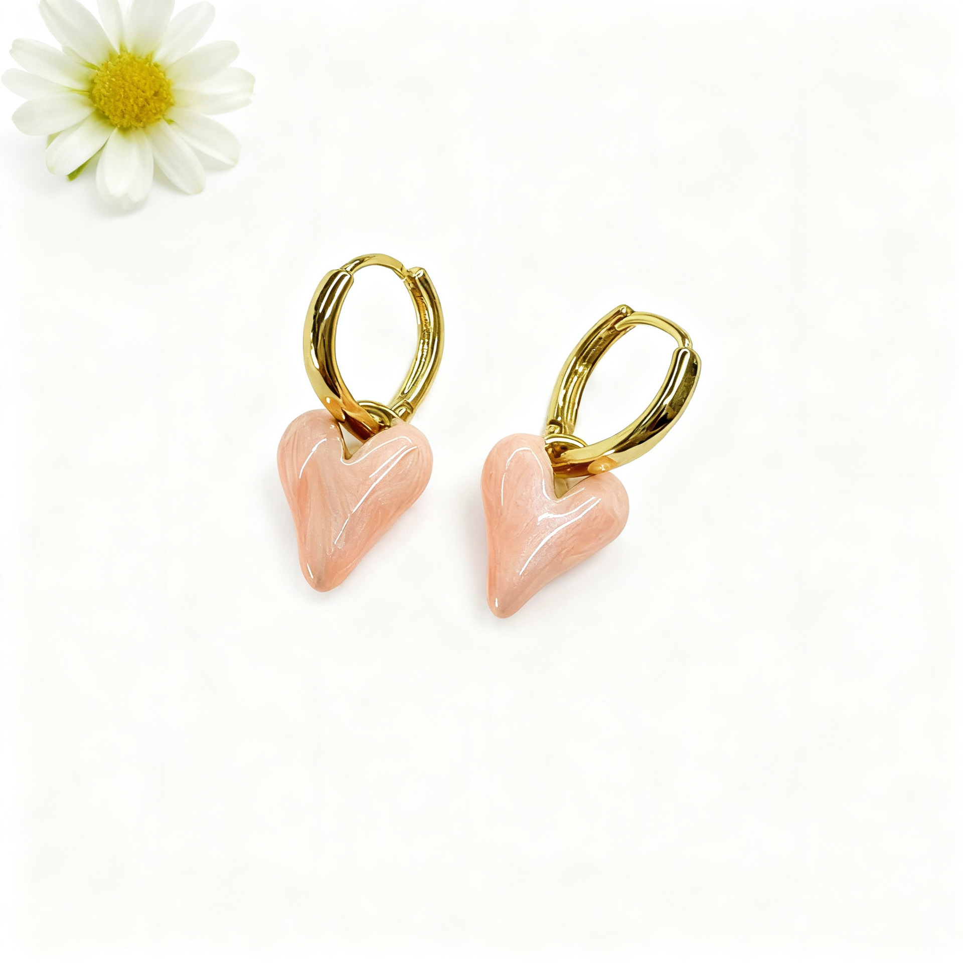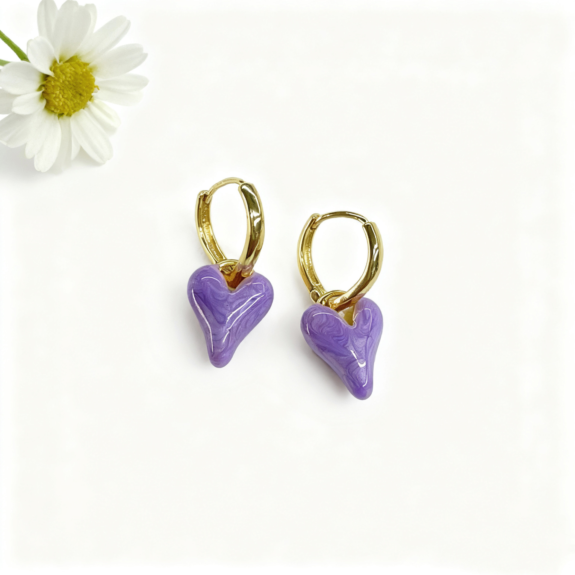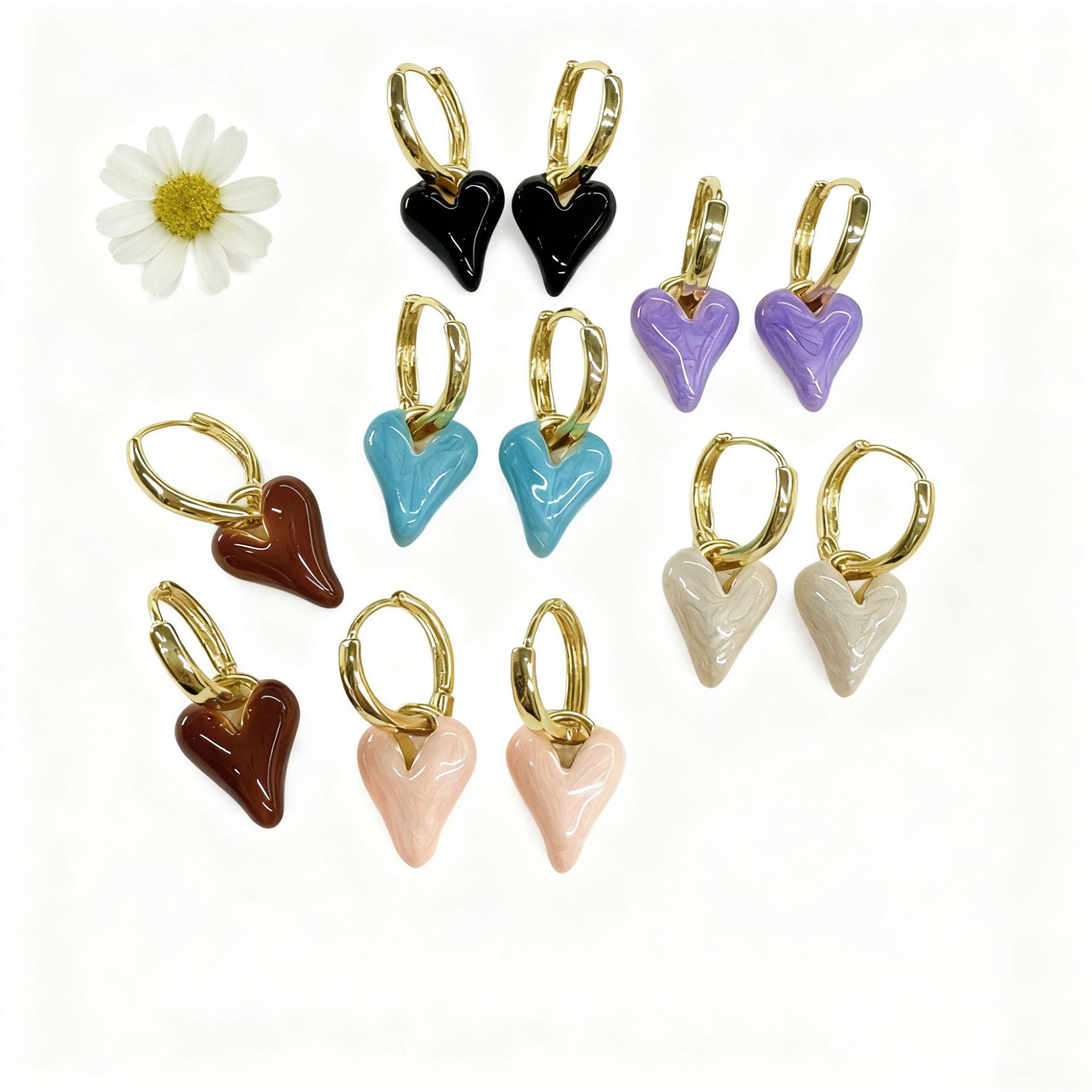 Messing Huggie Hoop Drop Earring, Hart, gold plated, voor vrouw & glazuur, meer kleuren voor de keuze, Verkocht door pair