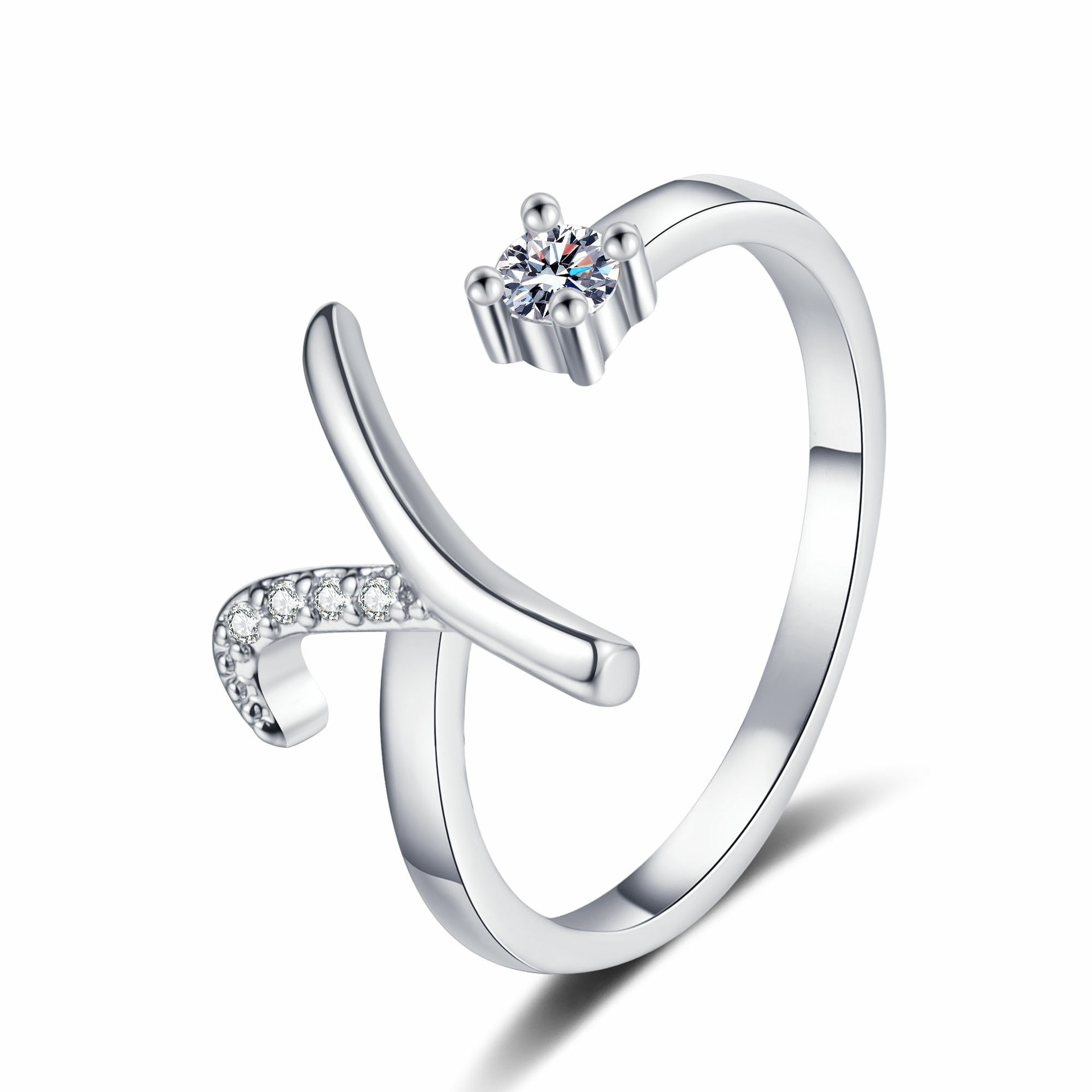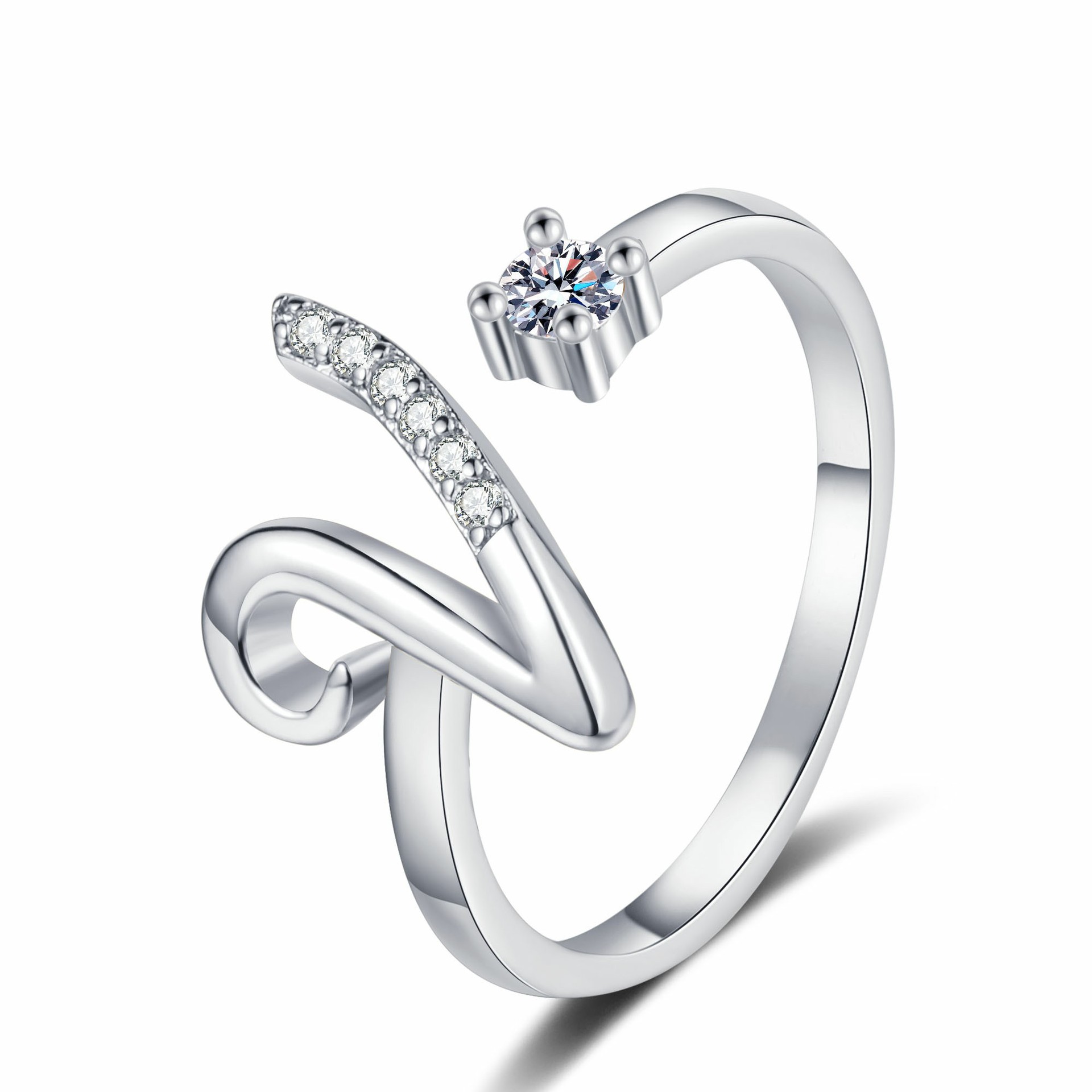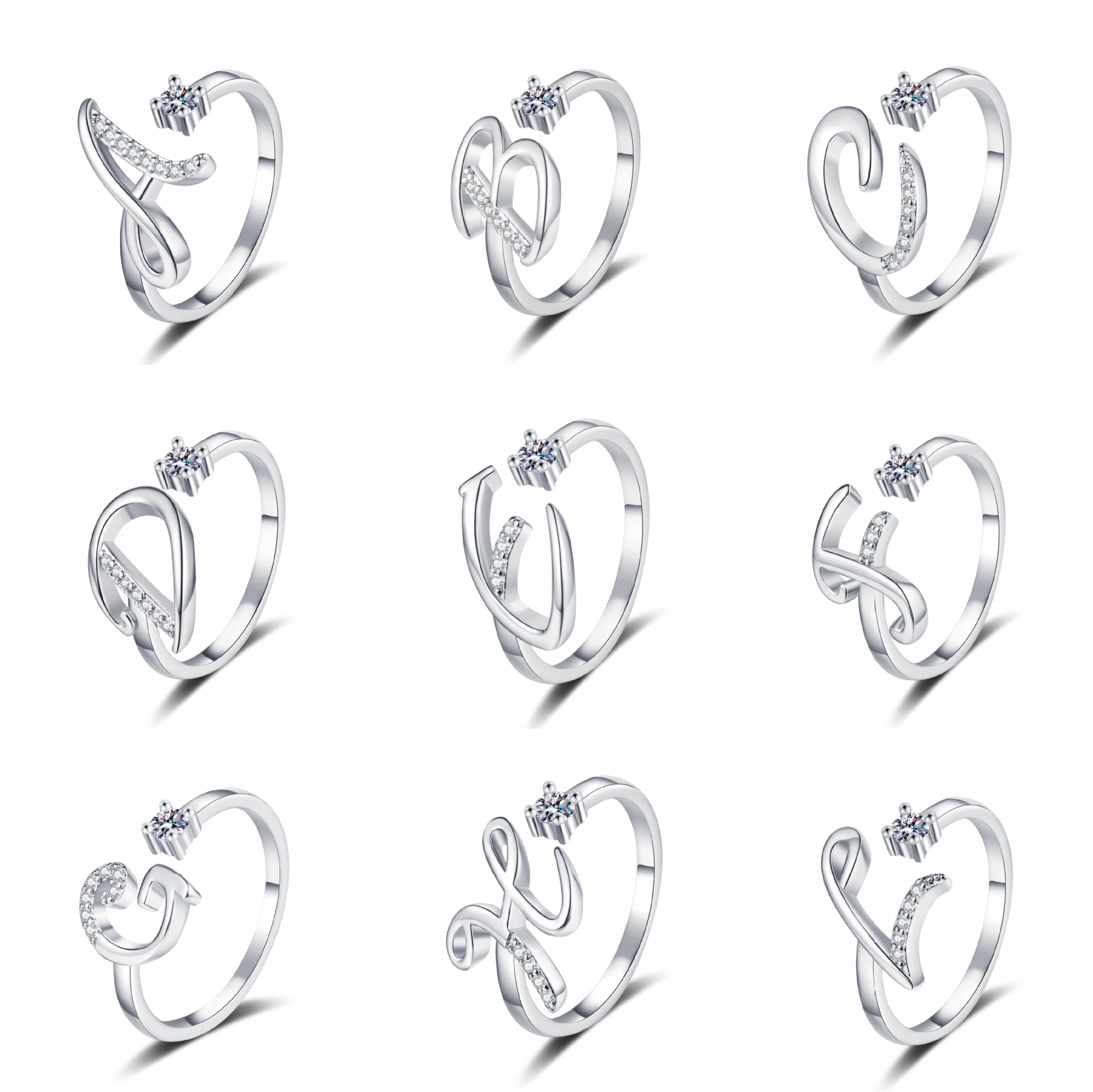 Messing Manchet Finger Ring, De Brief van het alfabet, plated, verschillende stijlen voor de keuze & voor vrouw & met strass, meer kleuren voor de keuze, Maat:6-8, Verkocht door PC