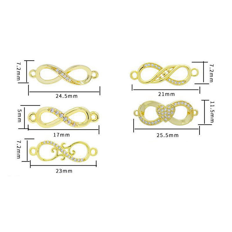Messing connector met micro-paved kubieke zirconia's, Oneindigheid, gold plated, DIY & verschillende stijlen voor de keuze & micro pave zirconia, Verkocht door PC