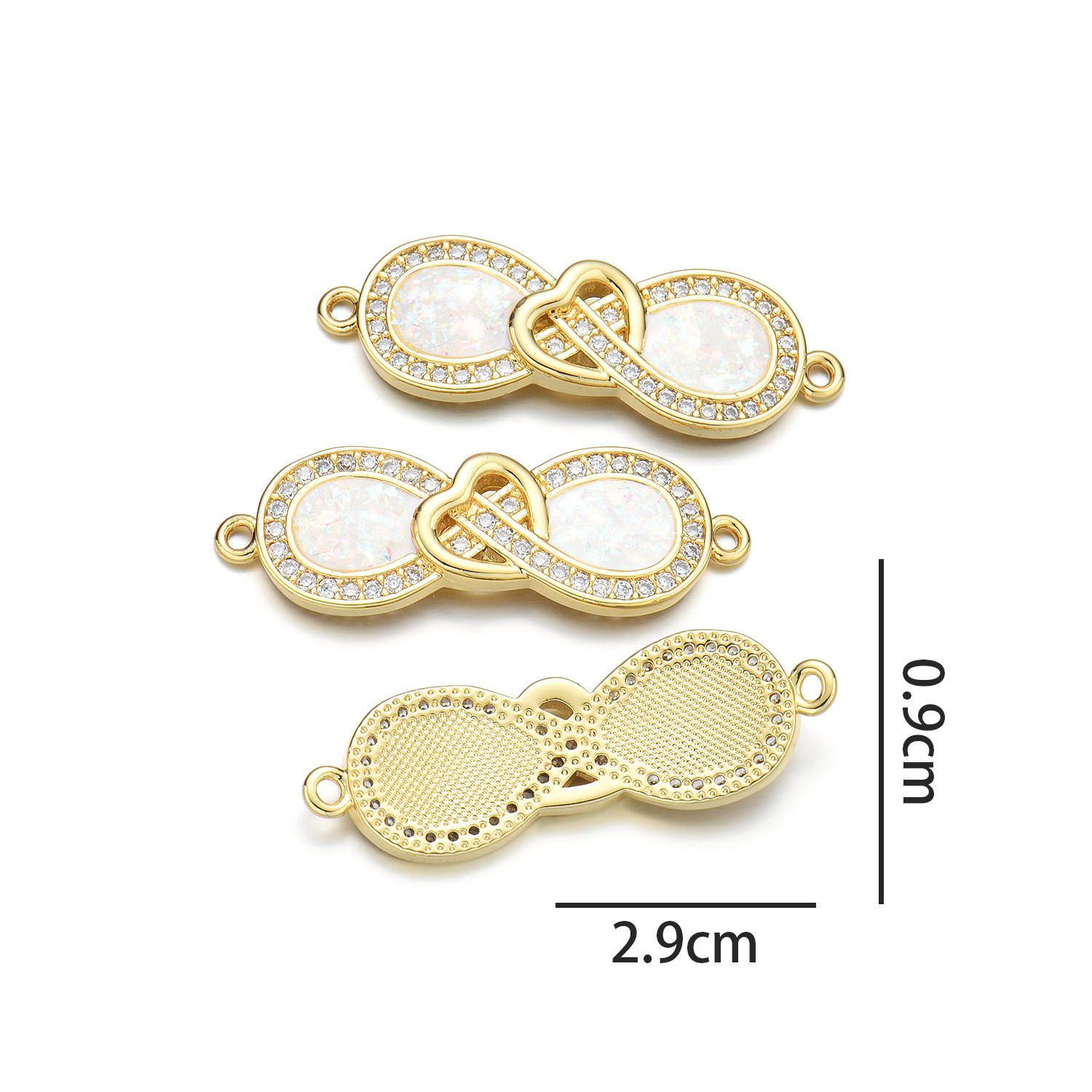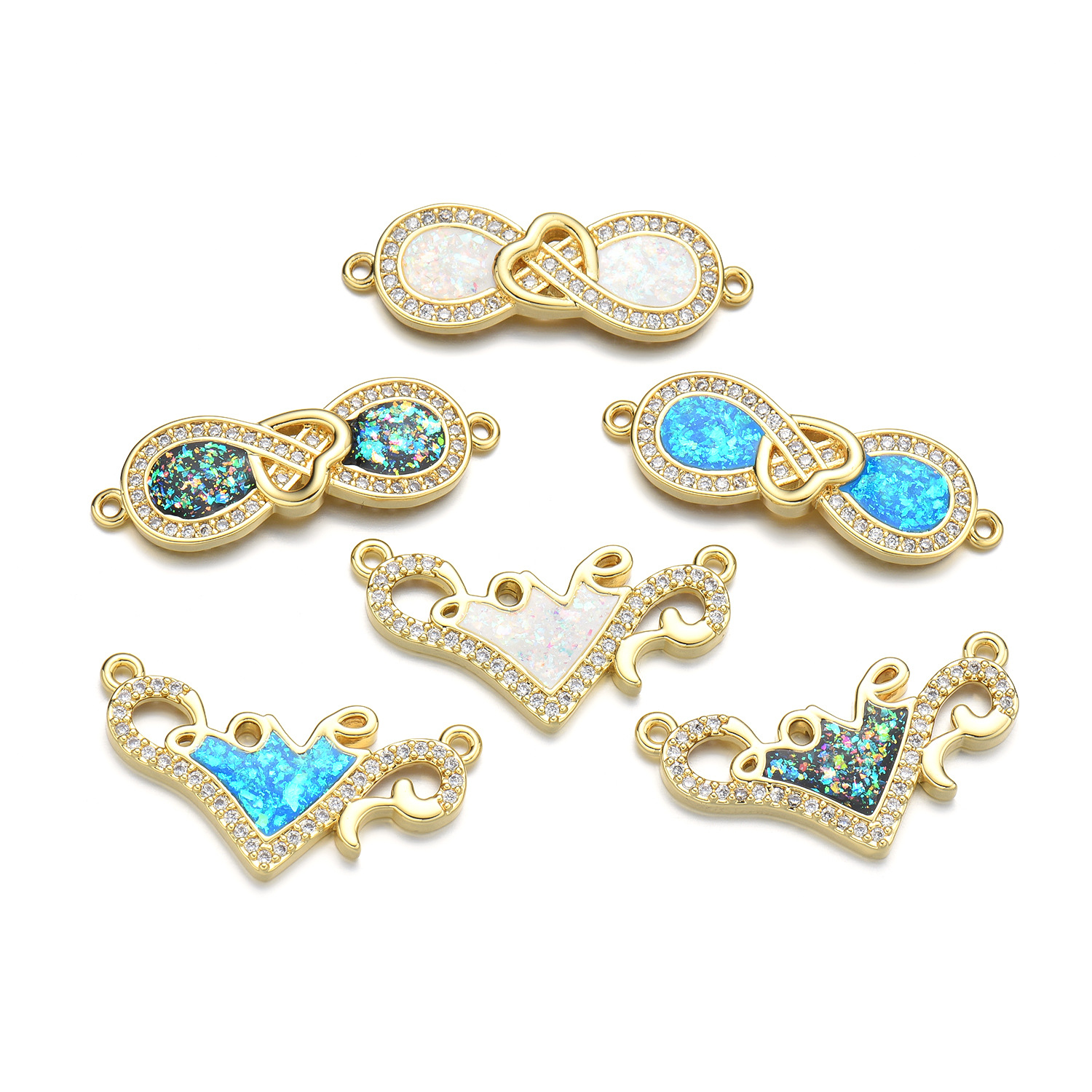 Messing connector met micro-paved kubieke zirconia's, met Opaal, plated, DIY & micro pave zirconia & 1/1 lus, meer kleuren voor de keuze, nikkel, lood en cadmium vrij, Verkocht door PC