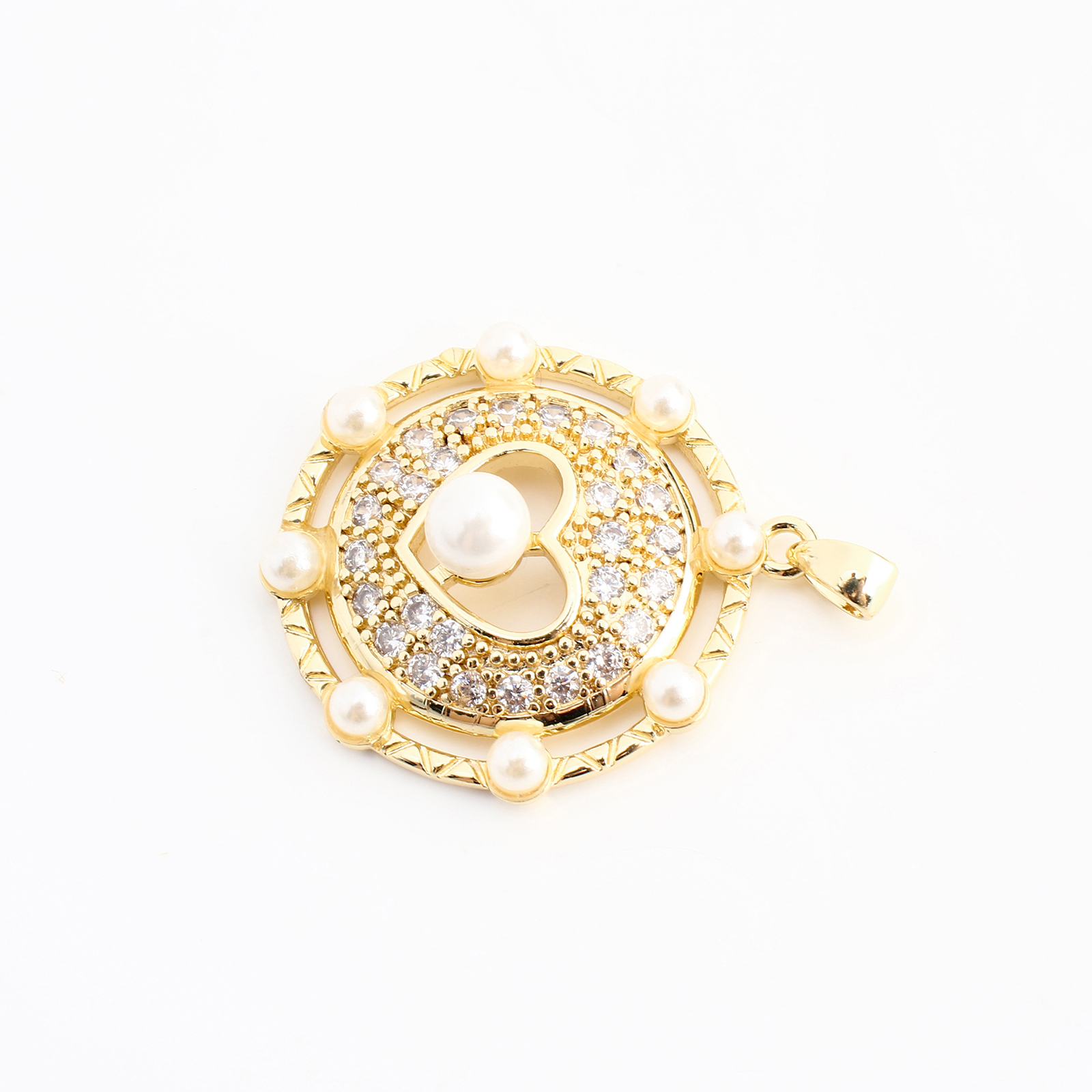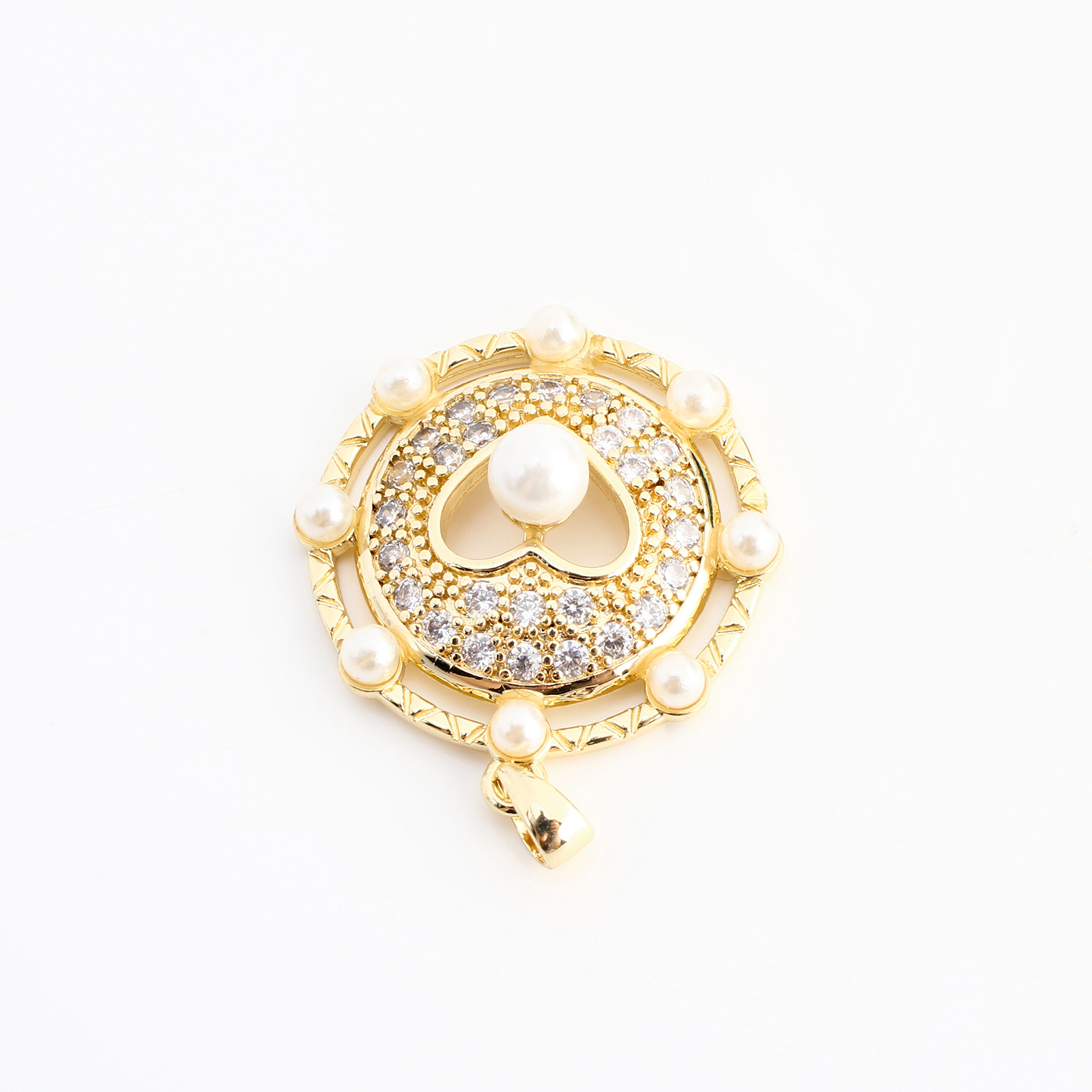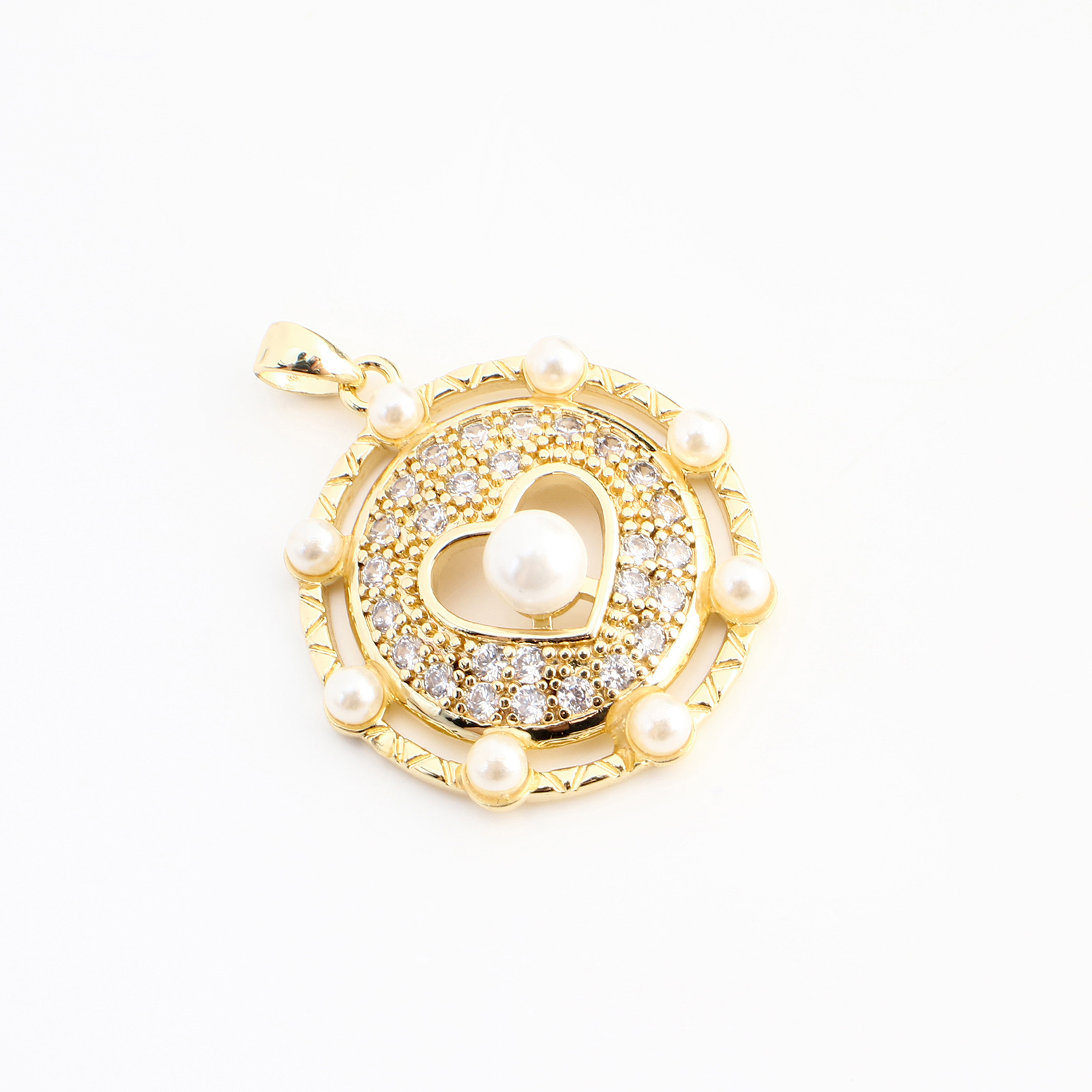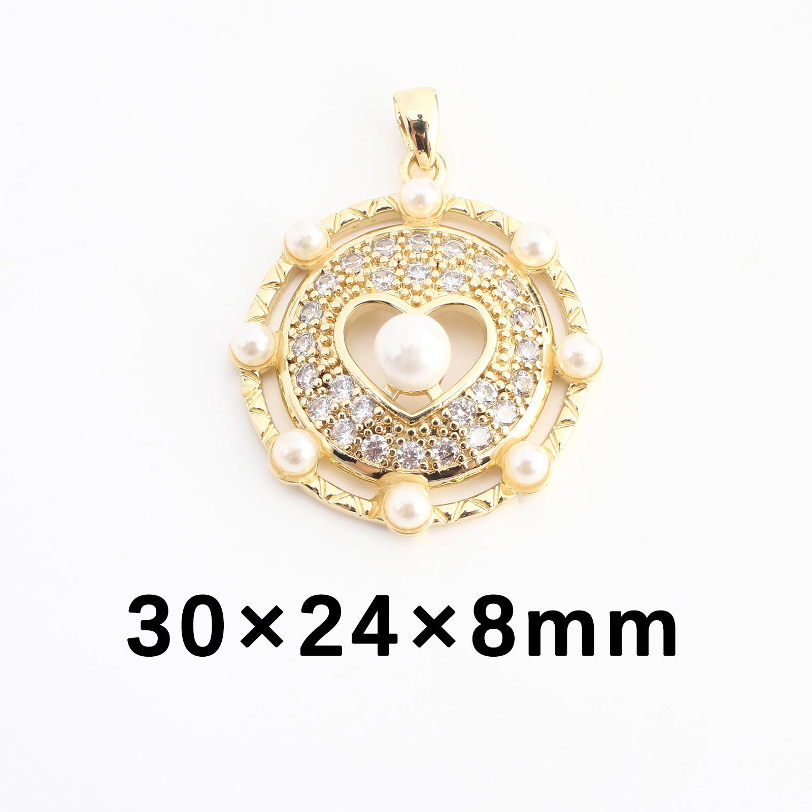 Messing hanger met micro-paved kubieke zirconia's, met Plastic Pearl, Ronde, DIY & micro pave zirconia & hol, gouden, 30x24x8mm, Verkocht door PC