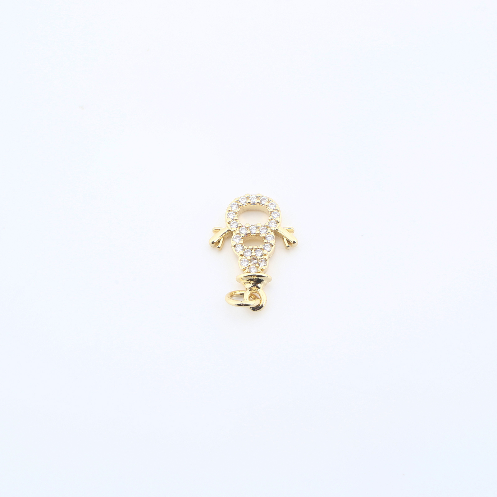 Messing hanger met micro-paved kubieke zirconia's, Sneeuwpop, plated, DIY & micro pave zirconia, gouden, nikkel, lood en cadmium vrij, 14x10x2mm, Verkocht door PC