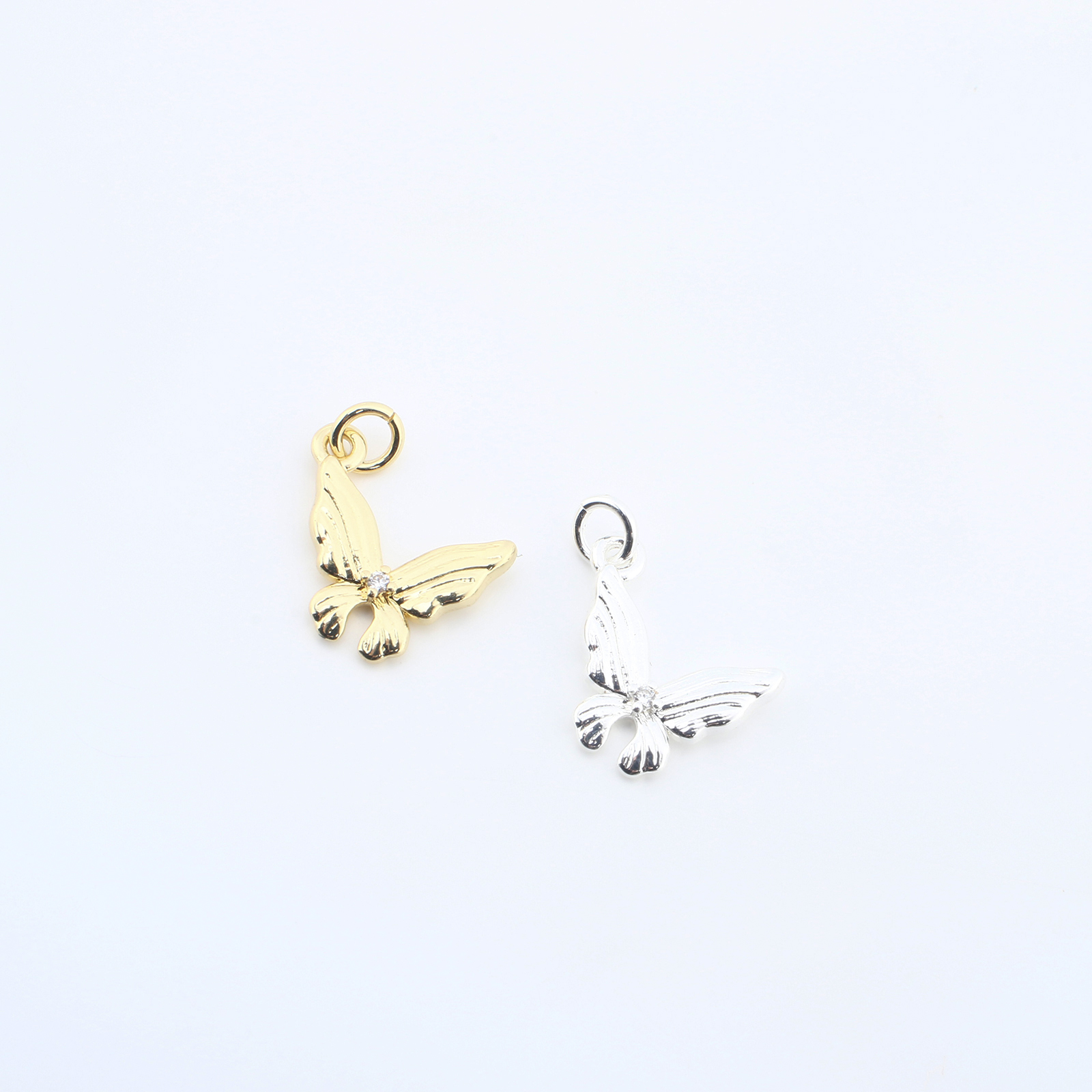 Messing hanger met micro-paved kubieke zirconia's, Vlinder, plated, DIY & micro pave zirconia, meer kleuren voor de keuze, 13x13x2mm, Verkocht door PC